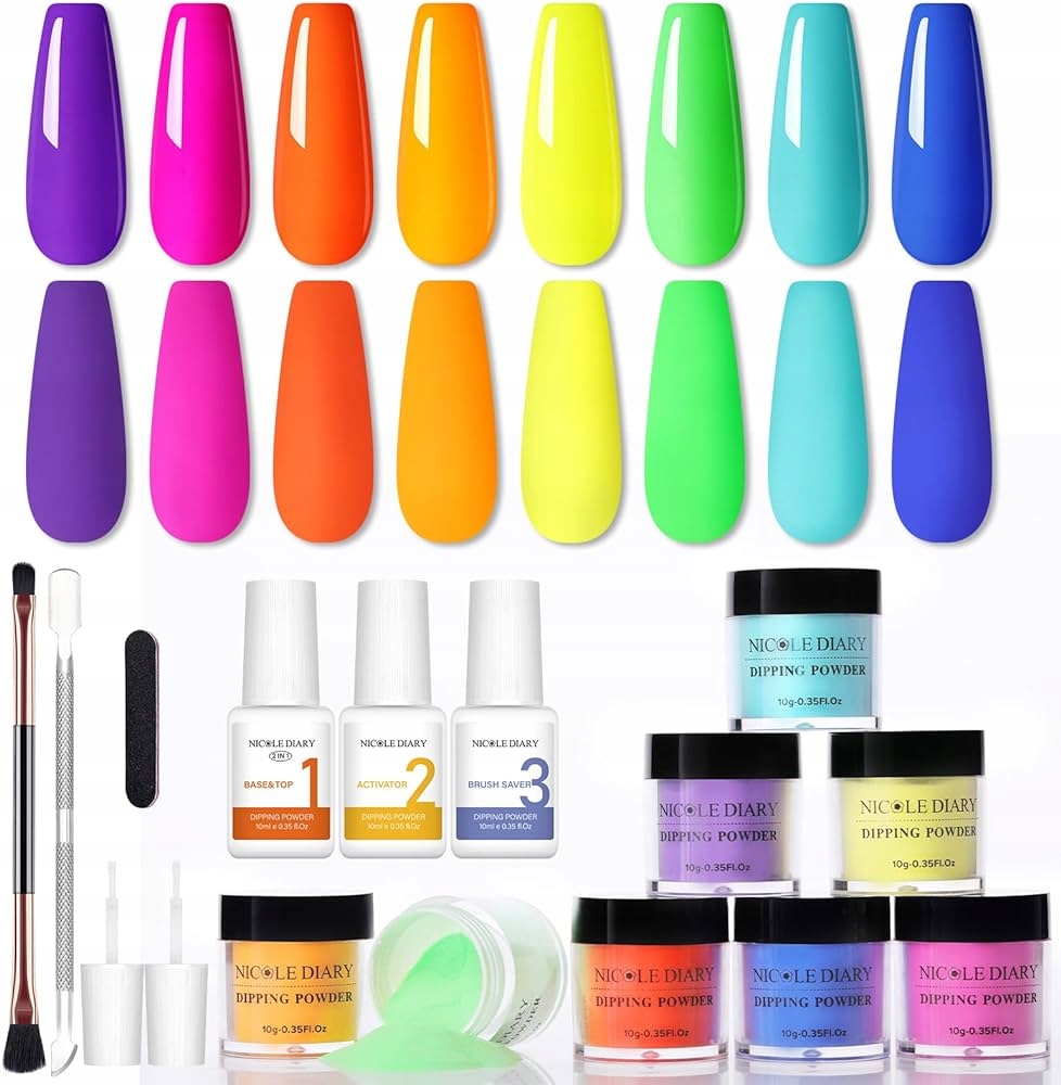 8 кольорів, необмежені можливості створення: NICOLE DIARY Dipping Powder Starter Set містить пудру для занурення у 8 кольорів. Це також додасть вам іншого вигляду, коли ви наносите різні шари.