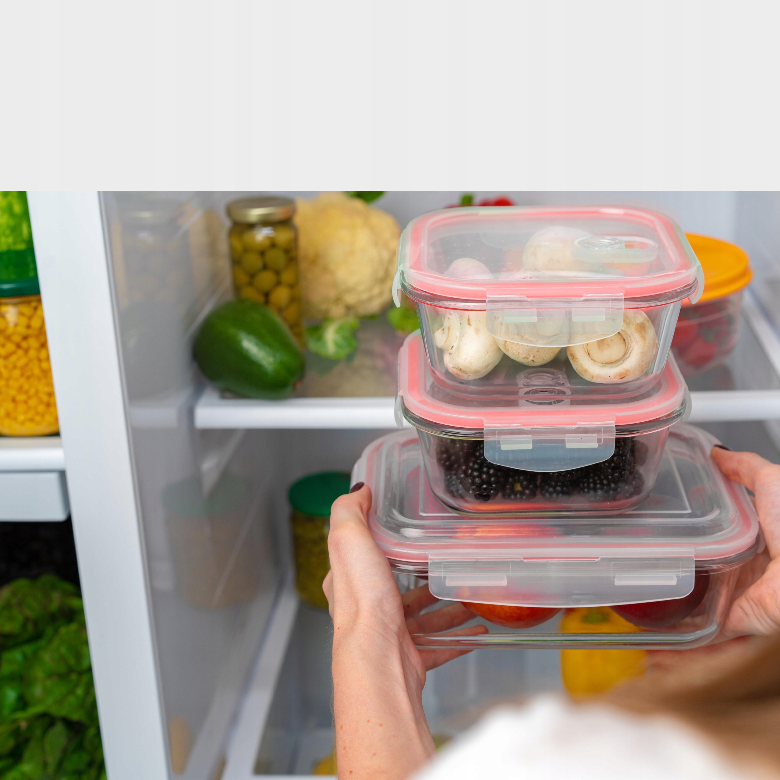 Набір прозорих скляних ємностей з герметичною закупоркою, призначених для зберігання харчових продуктів. Набір повністю виготовлений з високоякісного пластику, стійкого до температур від -40 до +400°C. Тому ми можемо зберігати їх у морозилці, а також розігрівати в них їжу за допомогою мікрохвильової печі.