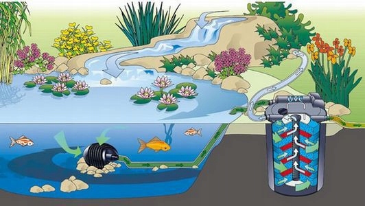 Це повний набір фільтрів містять повністю сумісні компоненти. Фільтр оснащений рядом фільтруючих матеріалів, які очищають воду механічно, біологічно та хімічно. Він також має вбудований ультрафіолетовий стерилізатор, який руйнує ДНК клітин водоростей, а також бореться зі шкідливими бактеріями, вірусами та грибками, таким чином залишаючи корисні нітрифікуючі бактерії у фільтрі недоторканими. Це значно покращує якість води та підтримує здорове середовище для риб і рослин у ставку.