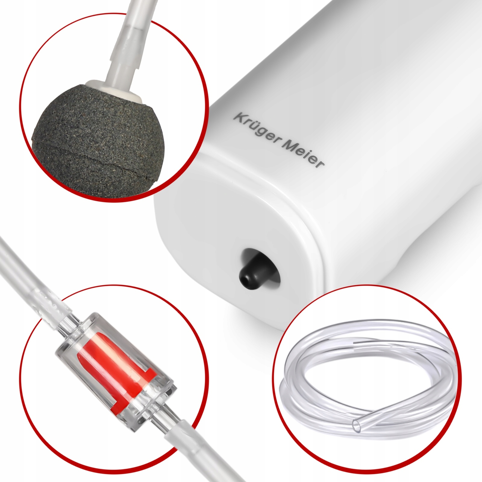 ⭐ Набір - акваріумний аератор від перевіреного бренду Kruger Meier. Це повний набір аерації для будь-якого акваріума від 10л до 40л. У коробці знаходиться повітряний насос, шланг, зворотний клапан і повітряний камінь. Повітряний насос надзвичайно тихий і енергозберігаючий.