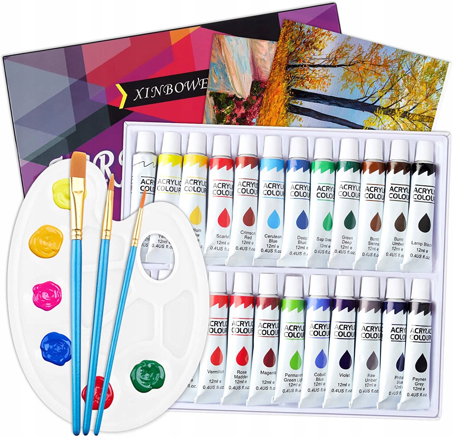 НАБІР АКРИЛОВИХ ФАРБ 24 КОЛЬОРИ 12МЛ + АКСЕСУАРИ