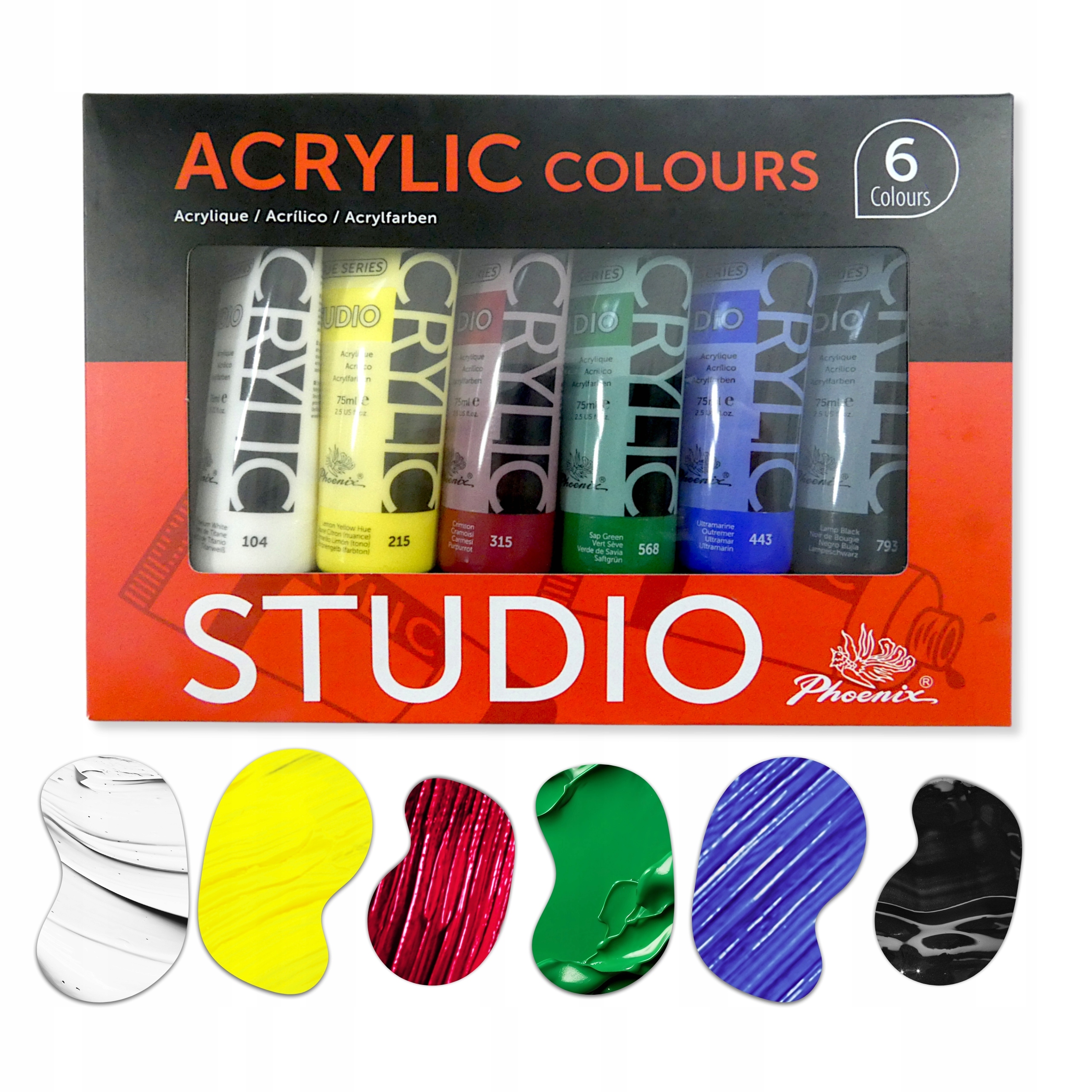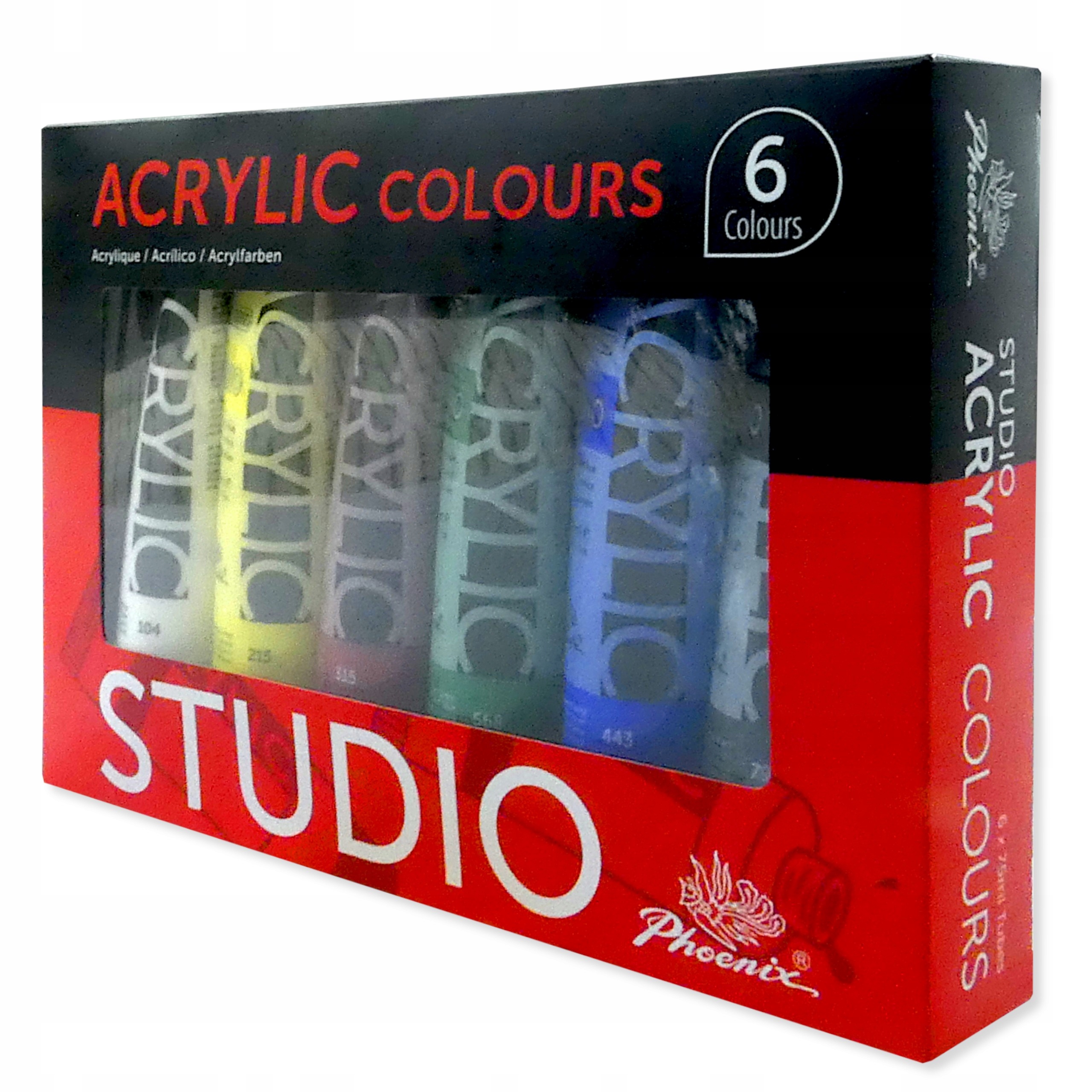 Zestaw Farb Akrylowych Phoenix 6 kolorów x 75 ml Farby Akrylowe Farba