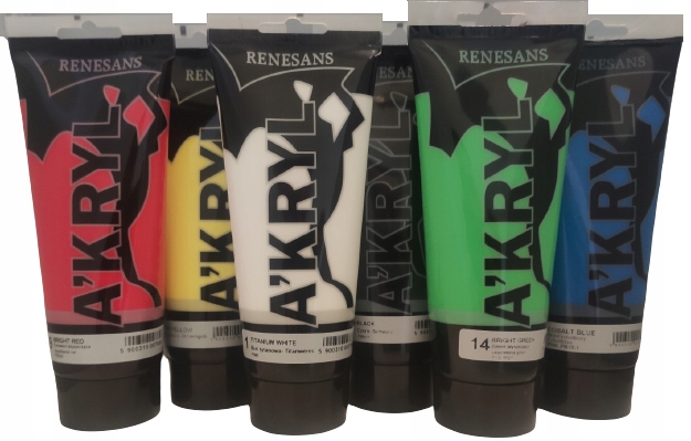 Акрилові фарби A'kryl фірми Renesans дуже якісні фарби польського виробництва в прозорих ПВХ тубах ємністю 200 мл.