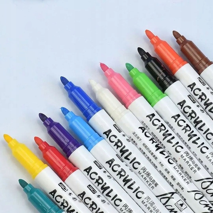 Наші акрилові маркери є надзвичайно універсальними - вони ідеально підходять для різних поверхонь, таких як камінь, скло, кераміка, метал, пластик, дерево та папір.