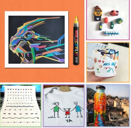 ↪️Для любителів і саморобних творців: Ваші домашні проекти виглядають так, ніби вони натхненні сірими буднями? Подаруйте їм життя за допомогою наших маркерів. Фарфорові чашки, дерев'яні фоторамки або кам'яні підставки під гаряче - все це може стати маленьким шедевром.
