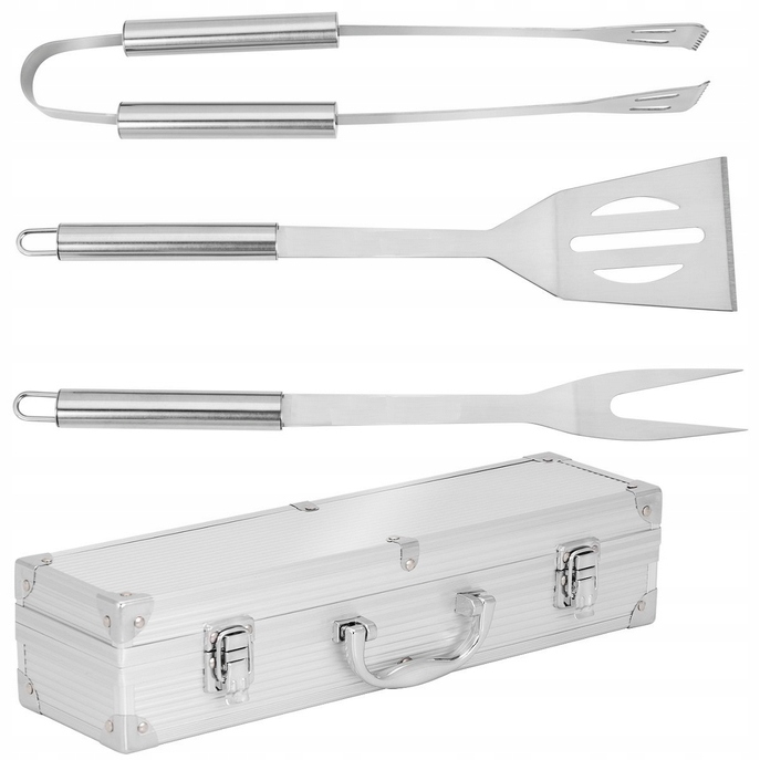 - Набір включає надзвичайно зручні та довговічні аксесуари: лопатку, виделку та щипці .