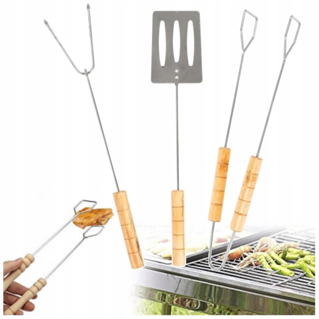 Набір приладдя для барбекю виготовлений з металу та має безпечні ручки з просоченої деревини для запобігання опікам.