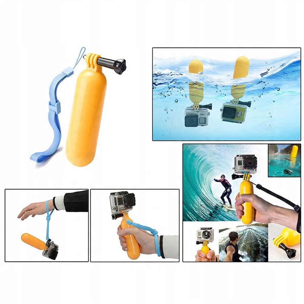 Плаваюча ручка поплавця є незамінною для запису під час плавання, пірнання та занять водними видами спорту. Завдяки цьому доповненню нам не доведеться турбуватися про те, що камера зникне в морських глибинах. Виразний жовтий колір поплавця виділяється на поверхні води, що дозволяє легко помітити прикріплену до нього камеру на відстані.
