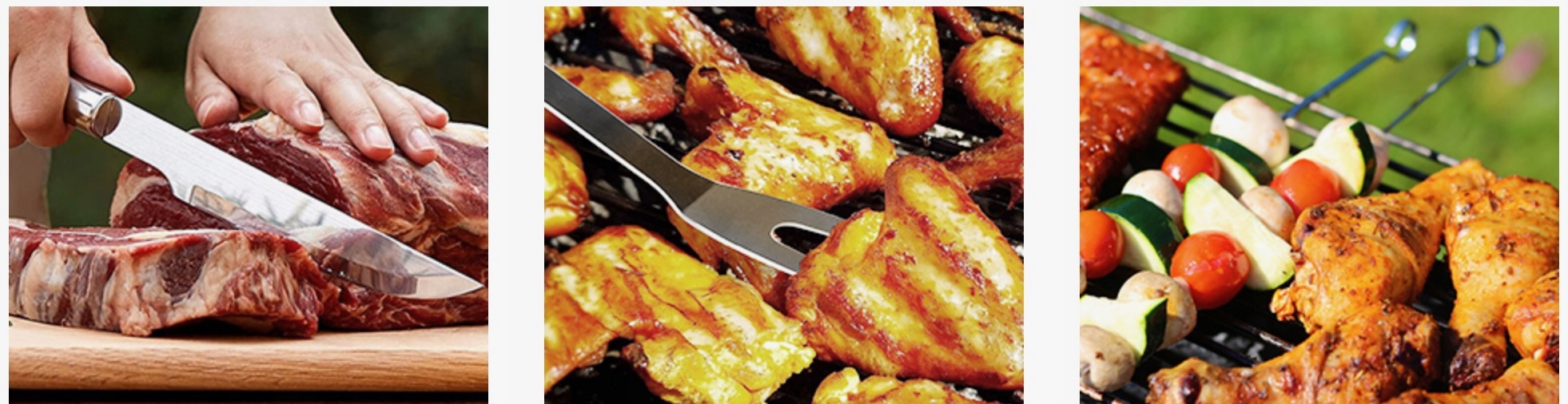 ➡️ Інструменти для гриля з нержавіючої сталі полегшать вашу роботу та зроблять приготування закусок вашою пристрастю. Це дозволить вам відчути себе шеф-кухарем у власному саду