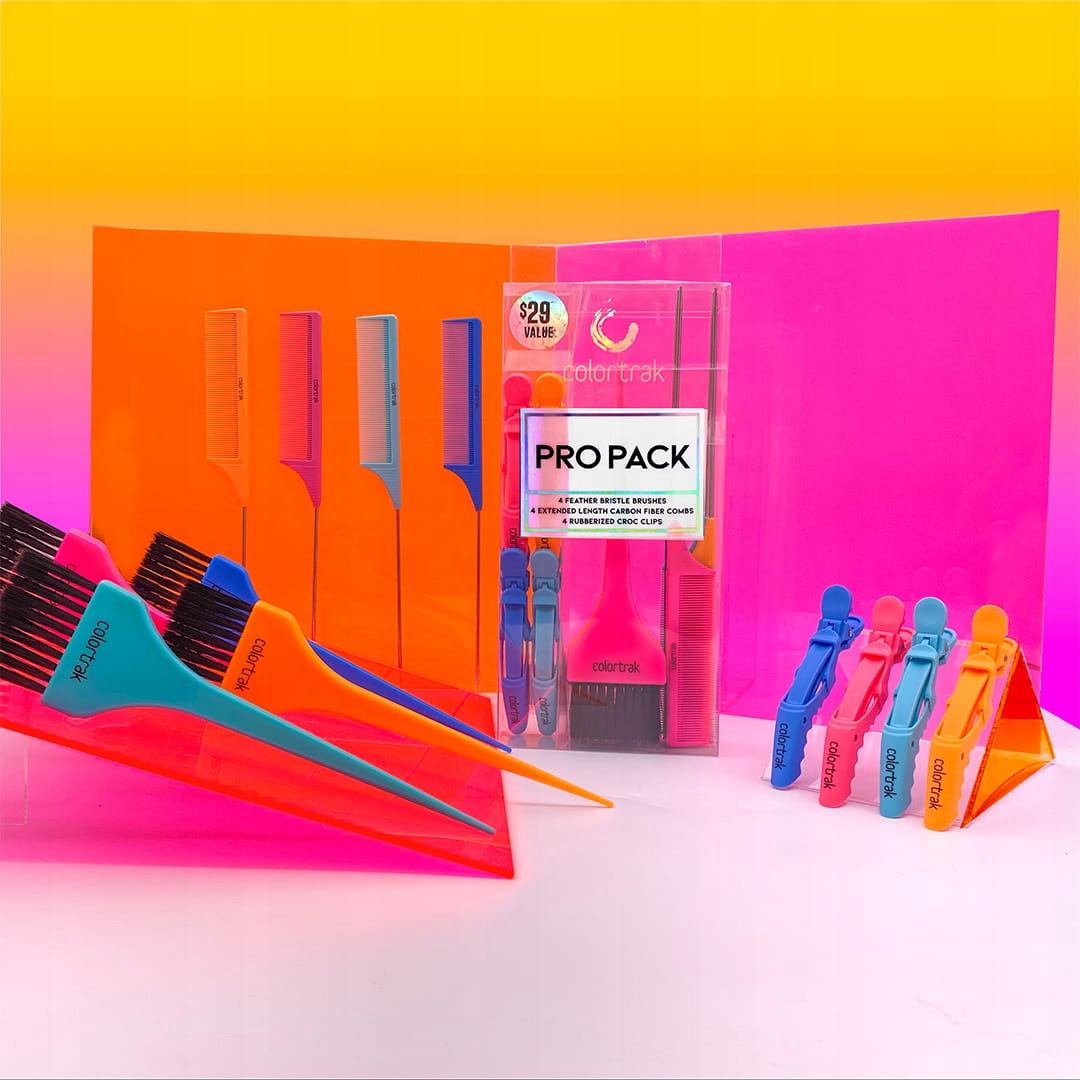 УЛЬТРАМ’ЯКІ ЩІТКИ З ПІР’ЯНОЮ ЩЕТИНОЮ: пакет Colortrak Pro включає чотири щітки з пір’яною щетиною шириною 5,7 см. Пензлі для фарбування волосся Colortrak Feather Bristle дозволяють легко створити ідеальний колір волосся. Кожна щітка має надм’яку пір’яну щетину для гладкого нанесення кольору та ручки з пшеничного волокна для оптимального контролю.