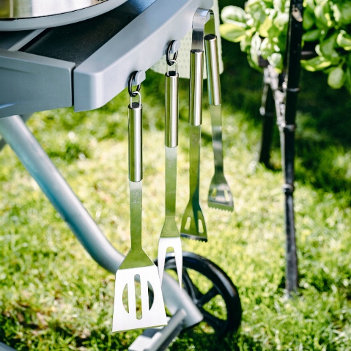 Кожен інструмент оснащений ручкою з отвором для підвішування, що не тільки полегшує зберігання, але й допомагає підтримувати порядок на кухні чи на грилі. Таким чином ви можете бути впевнені, що інструменти завжди будуть легко доступними та готовими до використання.