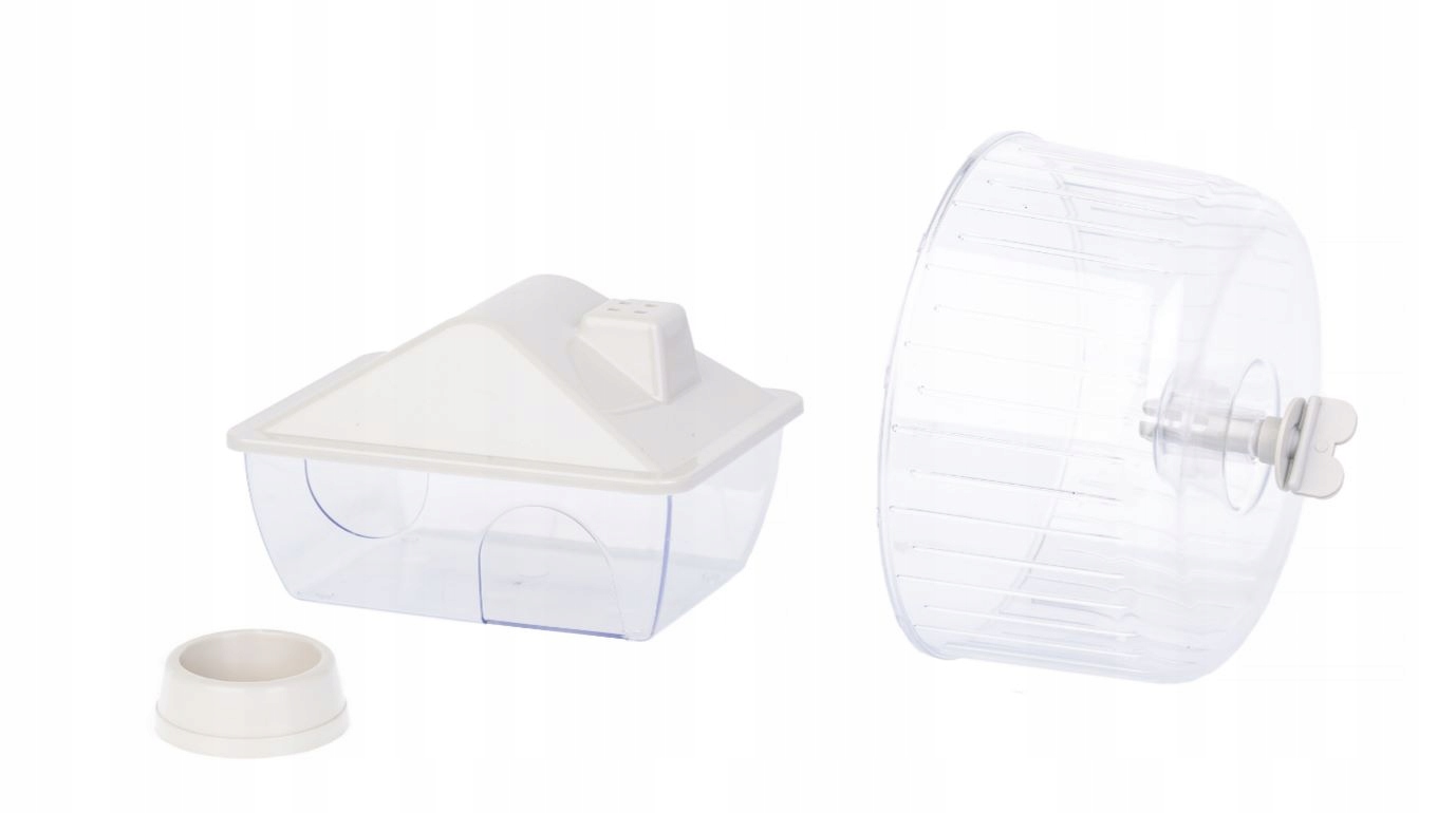 Набір аксесуарів для хом'яка: будинок, миска, карусель - це необхідні елементи обладнання для клітки. Весь набір створює ідеальне середовище для хом'яка, що дозволяє йому бути активним способом життя, розслабленням та безпечним споживанням страв.