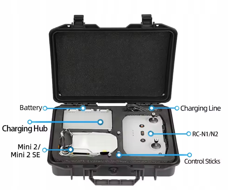 Міцний водонепроникний чохол, розроблений спеціально для DJI Mini 2 / Mini 2 SE /DJI Mini 4k. Захищає дрон і аксесуари під час транспортування.