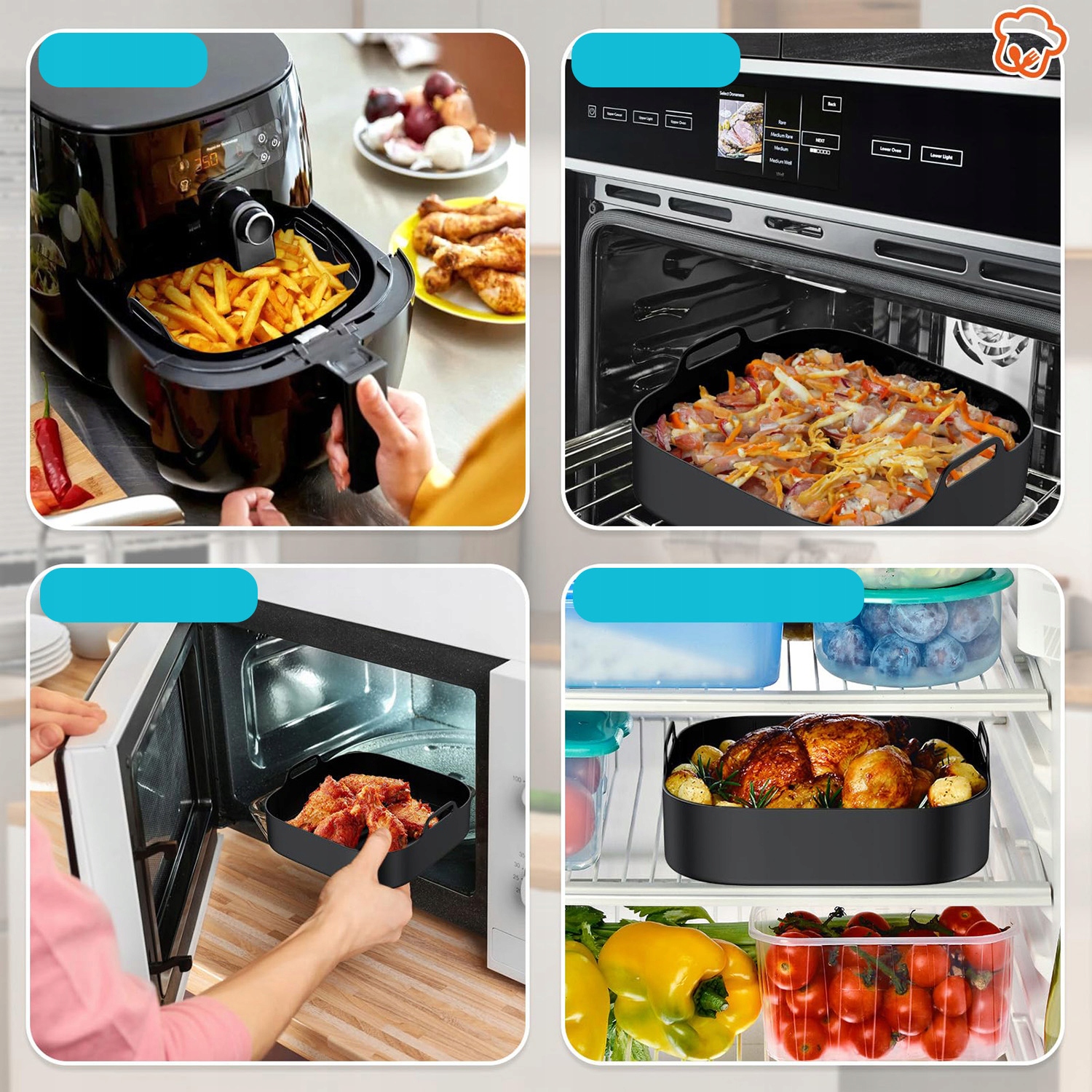 【Безпечний і здоровий харчовий матеріал】Наші аксесуари для аерофритюрниці виготовлені з нержавіючої сталі 304 і 100% харчового силікону. Вони не містять бісфенолу А, не мають запаху, не пригарають, не деформуються, довговічні та придатні для багаторазового використання. Наші аксесуари для аерофритюрниці можна використовувати при температурах від -20°C до 220°C і підходять для аерофритюрниць, духовок і мікрохвильових печей.
