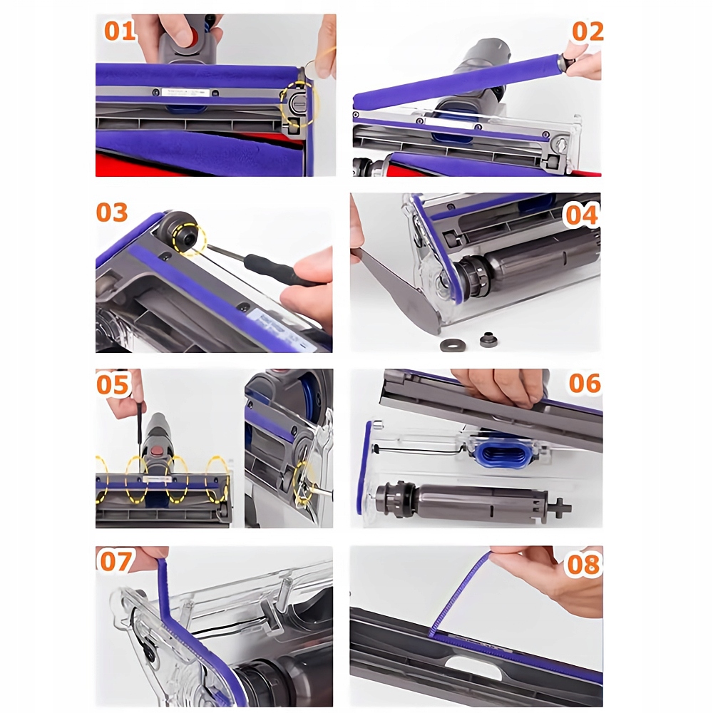 Змінна щітка та запасні смужки для ворсу сумісні з аксесуарами Dyson V6, V7, V8, V10 і V11, а також з пилососами SV11, SV10, SV12, SV13, SV27, SV14, SV17, SV15, SV22, DC58, DC59, DC62 і DC74.
