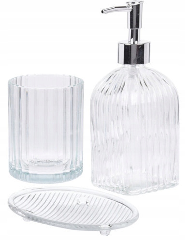 Скляний набір із 3 аксесуарів буде використовуватись у кожній ванній кімнаті.