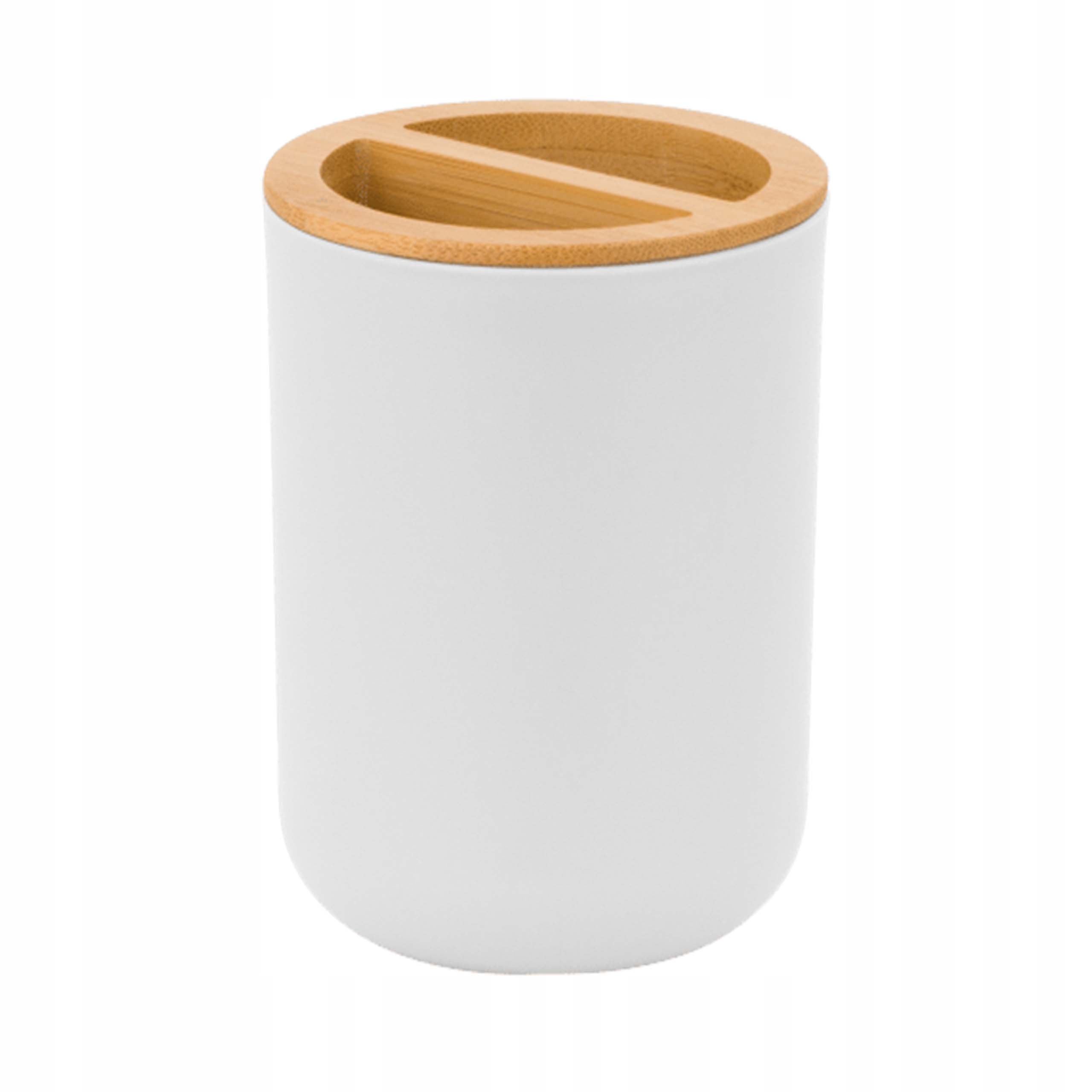 Включає такі аксесуари для ванної кімнати, як мильне посуд, дозатор мила, кружку, чашку зубної щітки, а також туалетна щітка та сміттєвий контейнер. Всі аксесуари для ванної кімнати виготовлені з високоякісного пластику з додаванням бамбукової деревини.