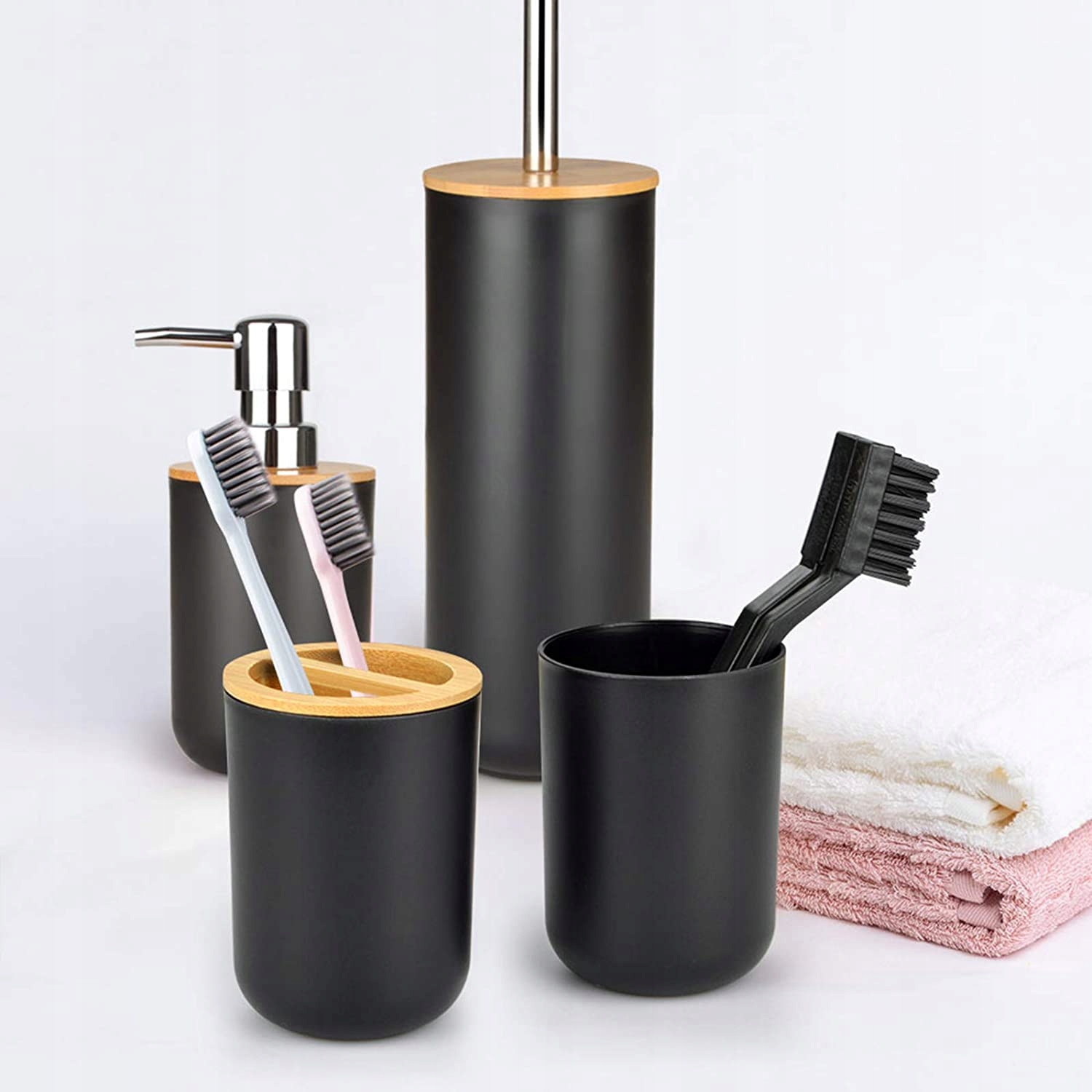 Відкрийте дивовижне поєднання сучасності та природи з набором аксесуарів для ванної кімнати. Сильний чорний колір елементів поєднується з теплом природного бамбука, створюючи вражаюче ціле, яке вписується в останні тенденції дизайну інтер'єру . Набір буде ідеальним у горищі, сучасному та класичному стилі.