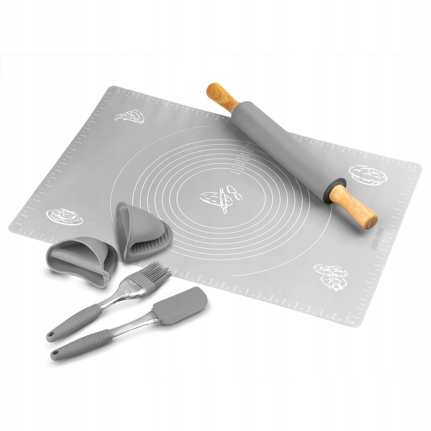 Силіконові випічки аксесуари Tadar Silico мають аж 6 елементів. Набір використовує міцний сірий силікон. Він здатний витримати при температурі від -20 до 200 градусів. У ролику є бамбукові ручки. Кухонне плече та силіконова щітка мають ручки, виготовлені частково з прозорого пластику. Як і лапи, він також отримав можливість призупинити, щоб вони завжди були в межах досяжності. Догляд за силіконовим набором аксесуарів для випічки простий і швидкий. Аромати, знебарвлення та бруд не проникають у її структуру. Це також захищає від приклеювання. Протягом багатьох довгих років залишатиметься на вашій домашній кухні.