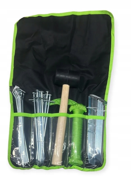 - Набір із усіма популярними одиночними деталями для кріплення наметів, тентів, тентів, підлоги, пляжних навісів та багато іншого.