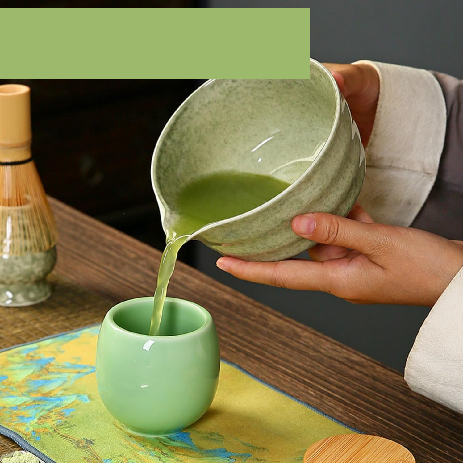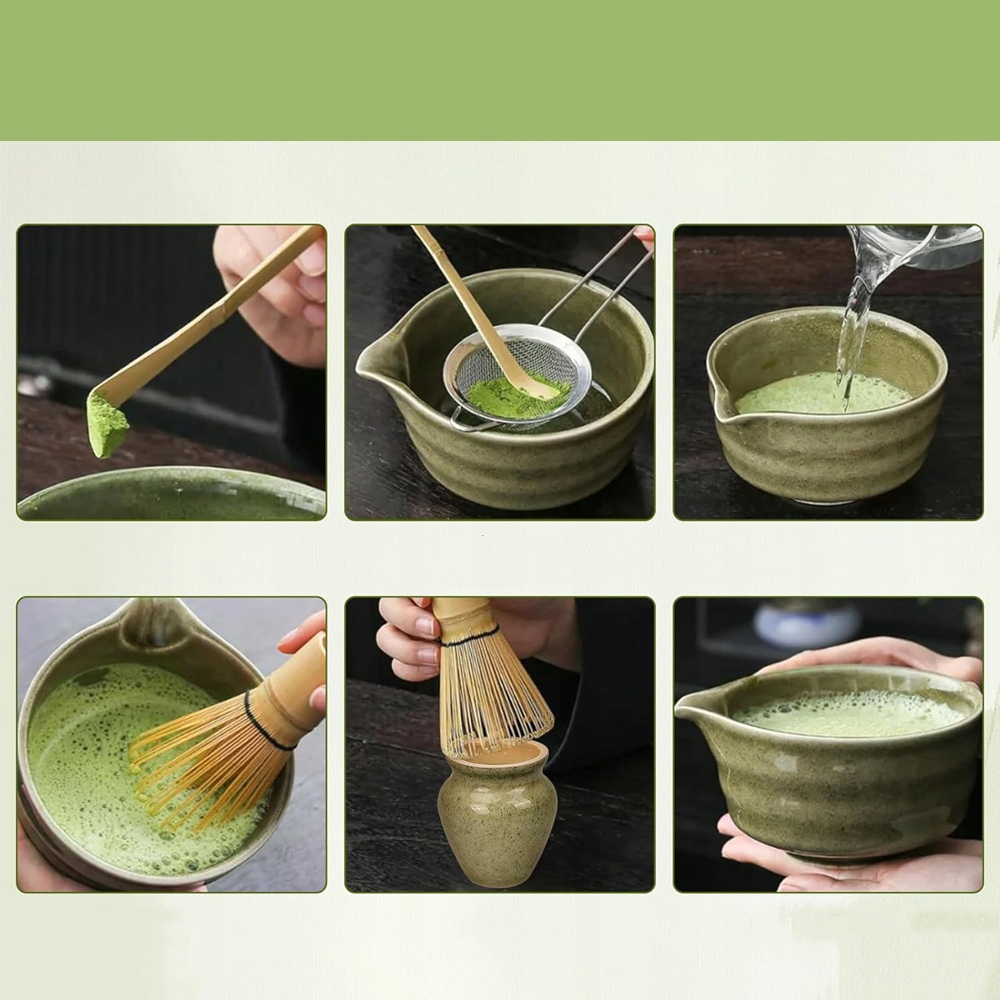 💚 Унікальний і практичний дизайн для спокійного досвіду:Цей набір віночка та миски для матчі має спеціальну чашу для матча з носиком, що пропонує як естетику, так і функціональність. Ексклюзивний дизайн чаю матча дозволяє легко трамбувати та розливати. Віночок для чаю матча та ложка для чаю матча з бамбуковим віночком забезпечують точні вимірювання порошку чаю матча, тож ви можете легко готувати ідеальну чашку щоразу.