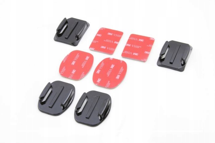 IV. Клейкі опори дозволяють встановити на рівні поверхні, такі як шоломи, дошки (сноуборд, серфінг), лижі, капот автомобіля тощо. У комплект входять два типи опор: профільовані (дозволяють камері кріпитися до заокруглених поверхонь, таких як шолом) і плоских (що дозволяє прикріпити камеру до плоских поверхонь, таких як лижі чи капот автомобіля).