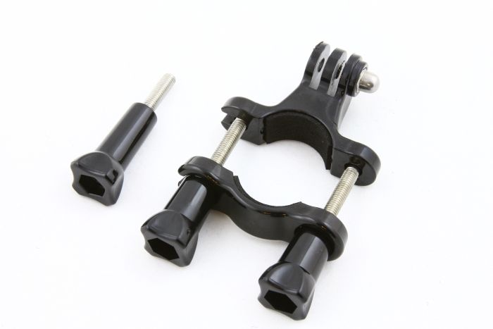 VIII. Кріплення для велосипеда/керма - затискна опора для гвинтів(затискач для кріплення) дозволяє дуже стабільно кріпити камеру на профільних елементах, таких як труби, смуги і т.д. різної, навіть значної товщини.