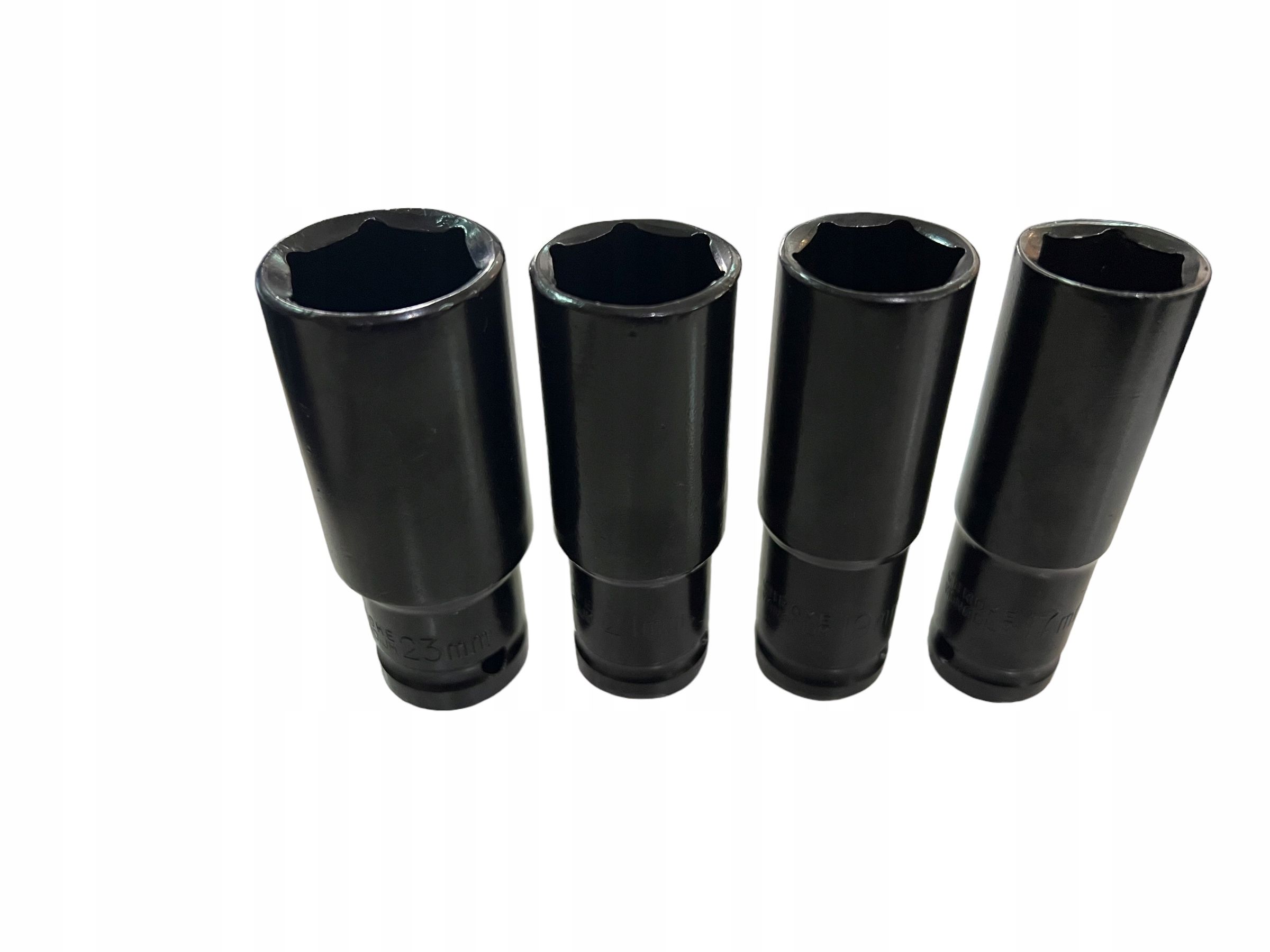 - Сумісність: У набір входять розетки розміром 17 мм, 19 мм, 21 мм і 23 мм.