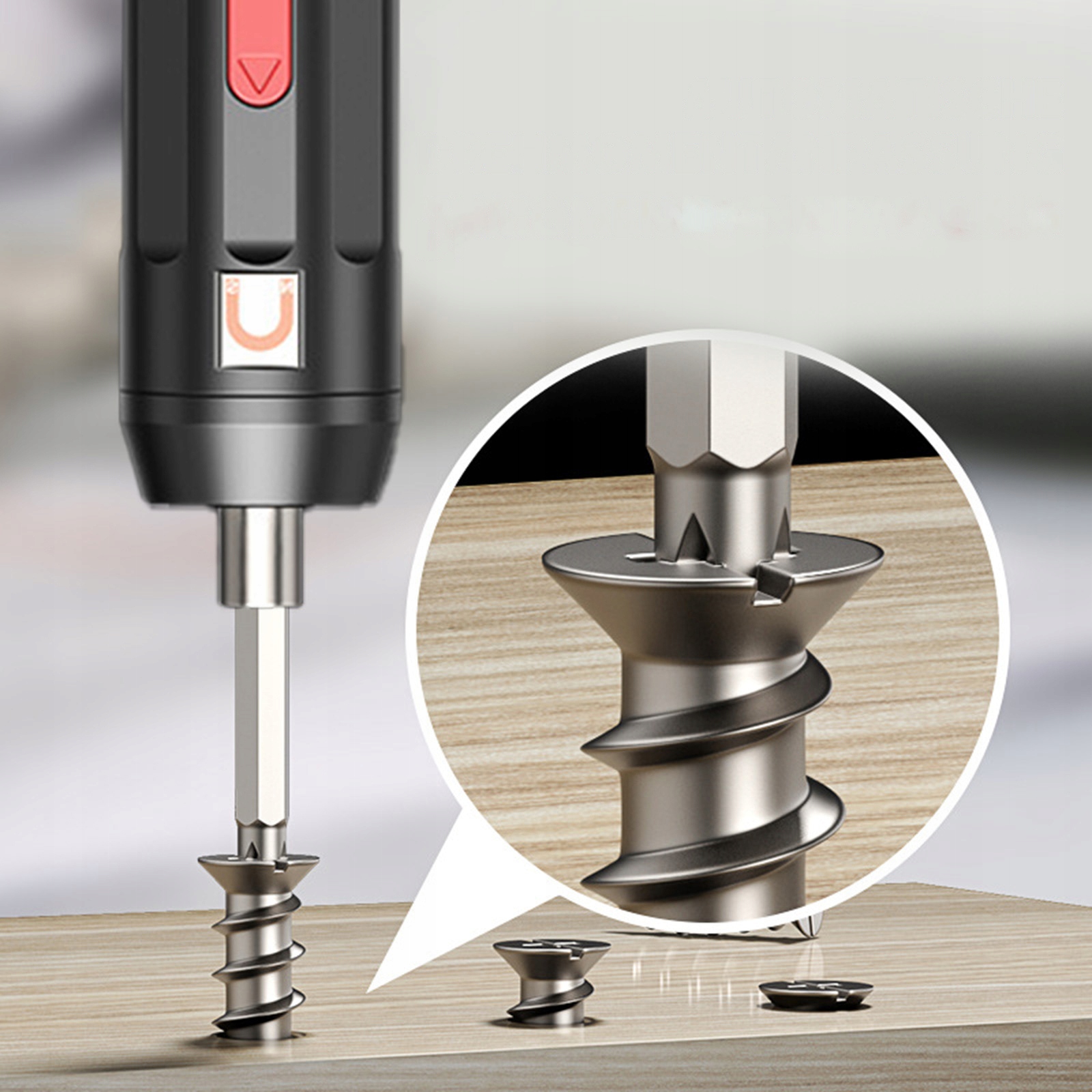 - Використовує потужний двигун постійного струму з чистої міді з постійним магнітом, що дозволяє легко вкручувати шурупи в товсті дерев’яні дошки.