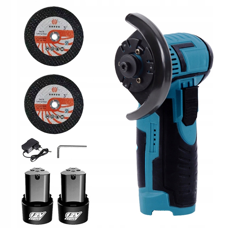НАБІР АКУМУЛЯТОРНОЇ КУТОВОЇ ШЛІФУВАЛЬНОЇ МАШИНКИ + 2 ДИСКА 2 БАТАРЕЇ 11000 ОБ/ХВ 800 Вт 12 В