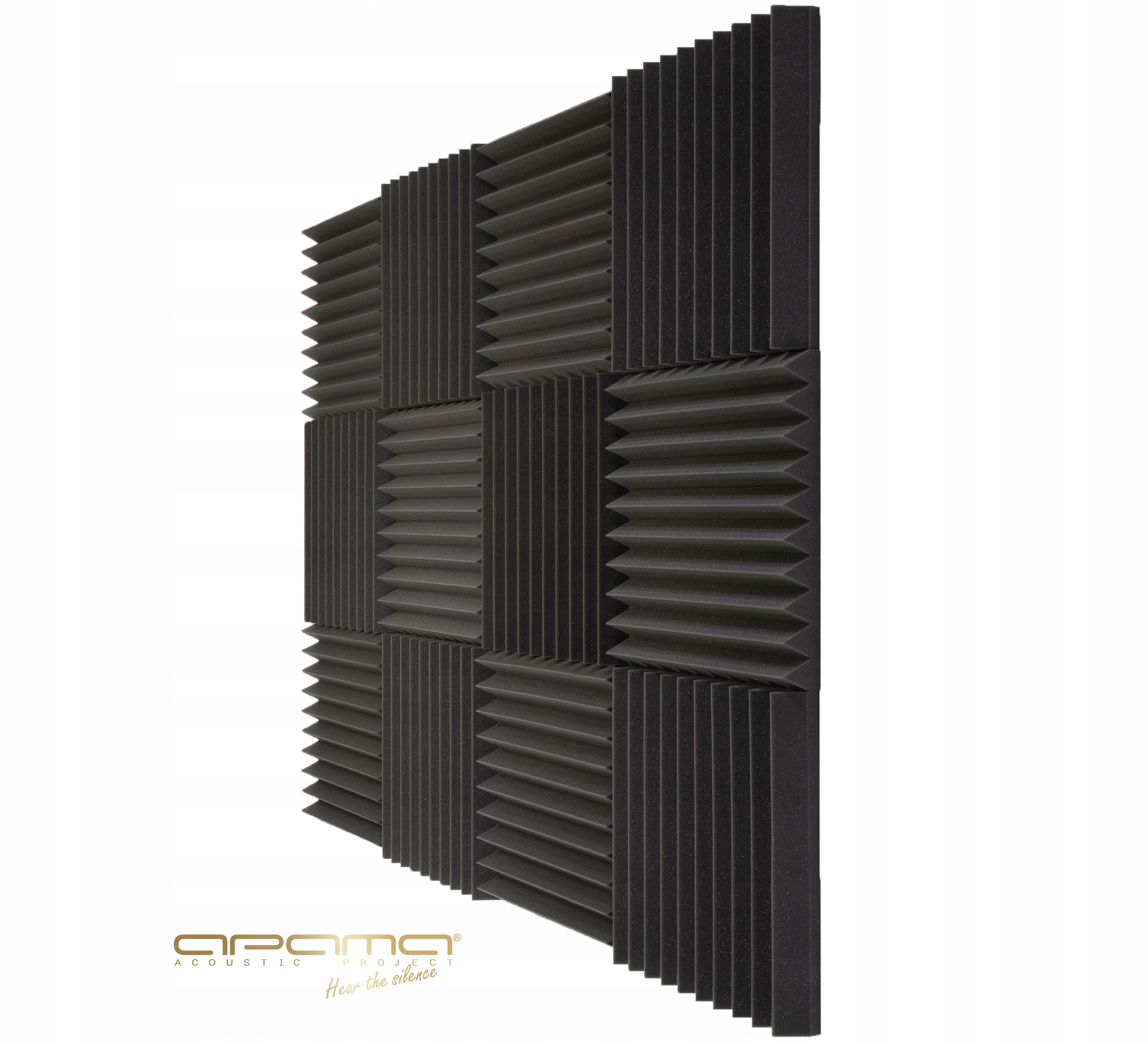 Ми пропонуємо вам оригінальний набір з дванадцяти акустичних звукоізоляційних панелей у формі загальної товщини 7 см, з шаром самоклею - ідеальним рішенням для покращення якості звуку у вашій кімнаті!