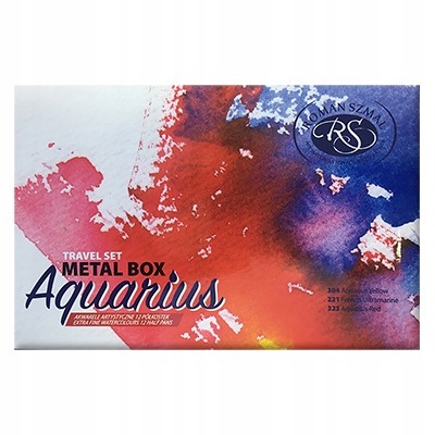 Aquarius Watercolors – найякісніші мокрі акварельні фарби польського виробництва фірми Roman Szmal. Повна палітра кольорів налічує аж 165 найменувань! Більшість кольорів засновані на одному пігменті - завдяки цьому при їх змішуванні ми отримаємо очікувані кольори. Сполучною речовиною фарб є гуміарабік і бджолиний мед. Всі кольори мають найвищий клас світлостійкості за шкалою Blue Wool. Набір з 12 напівкубиків поміщений у дуже функціональну металеву коробку, яка в розкладеному вигляді також стає палітрою для змішування кольорів. У набір входять найнеобхідніші кольори, які дозволяють отримати безліч індивідуальних відтінків. Касета займає настільки мало місця, що ви завжди можете мати її з собою і при необхідності в будь-якій ситуації почати записувати те, що вас надихає в даний момент.