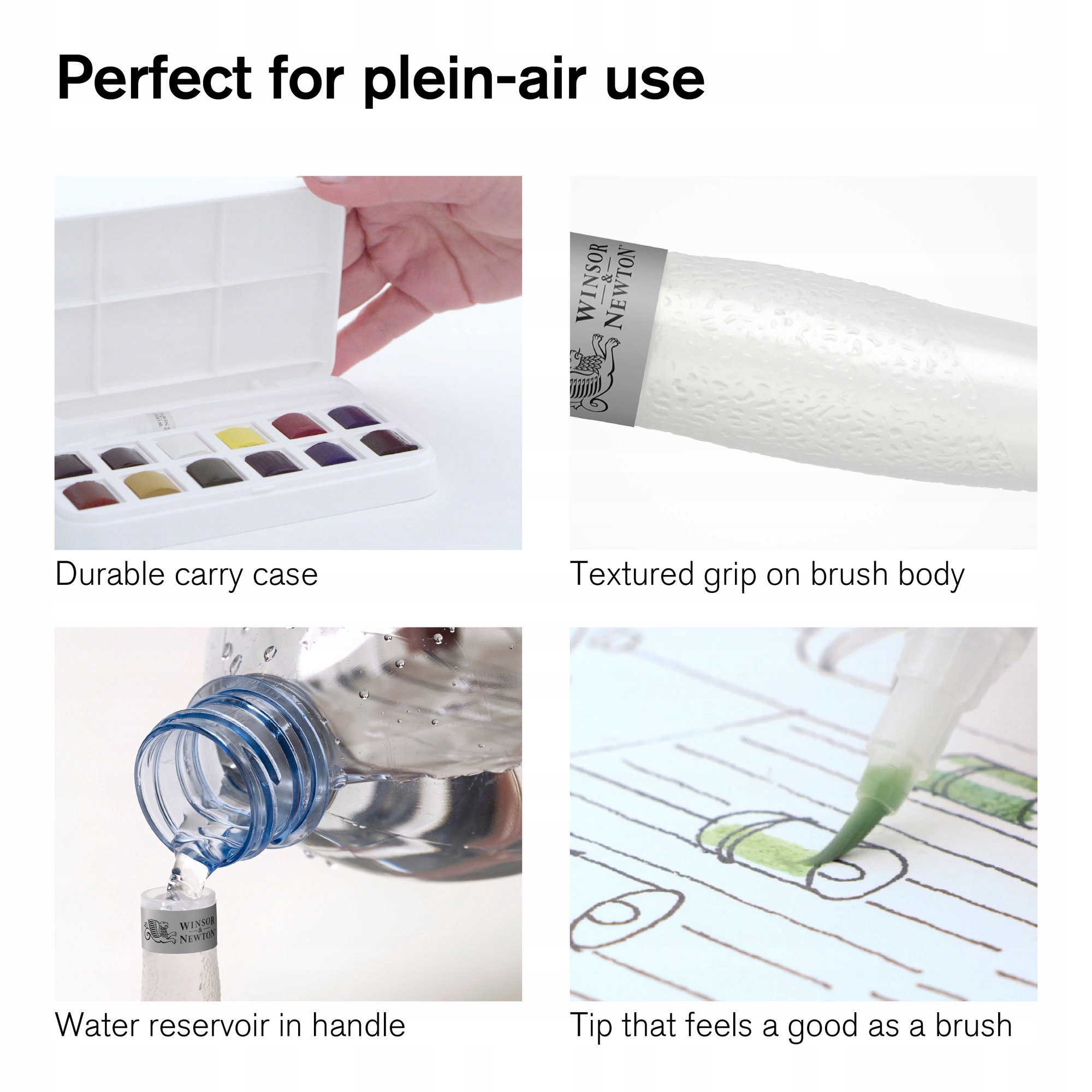 Набір складається з 12 напівгасту серії cotman у пластиковій коробці та складеній щітці з водою.