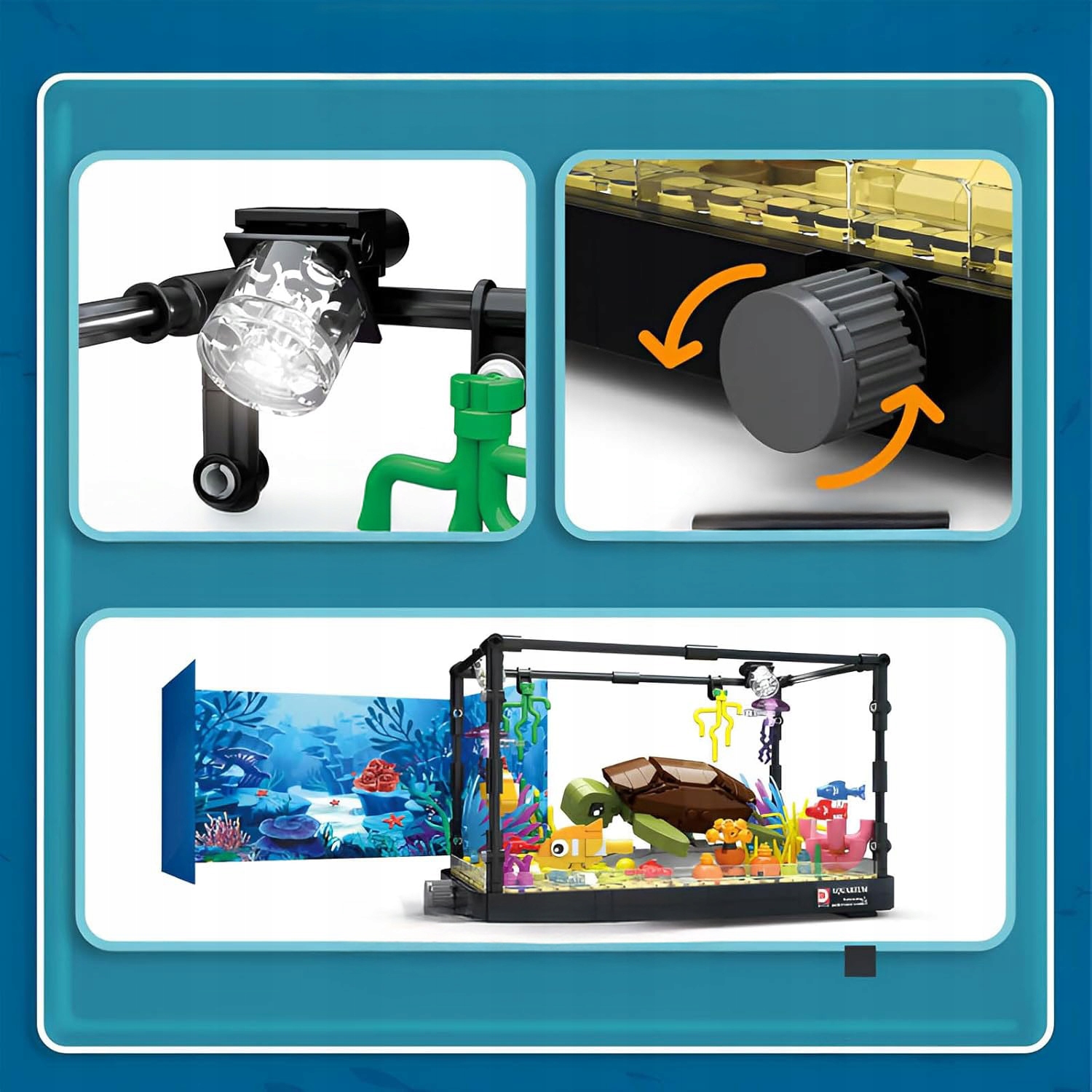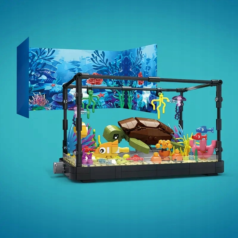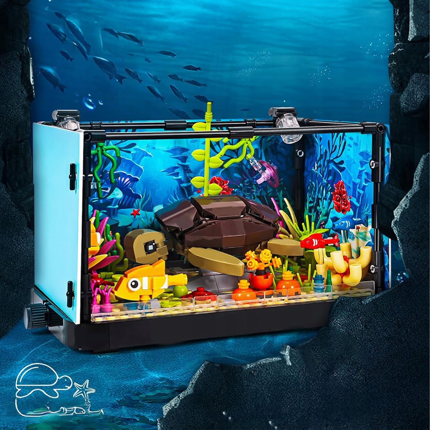 Черепаха, встановлений в акваріумі, містить не лише 753 блоки, але й креативне освітлення, що забезпечує дивовижний світловий ефект вночі.