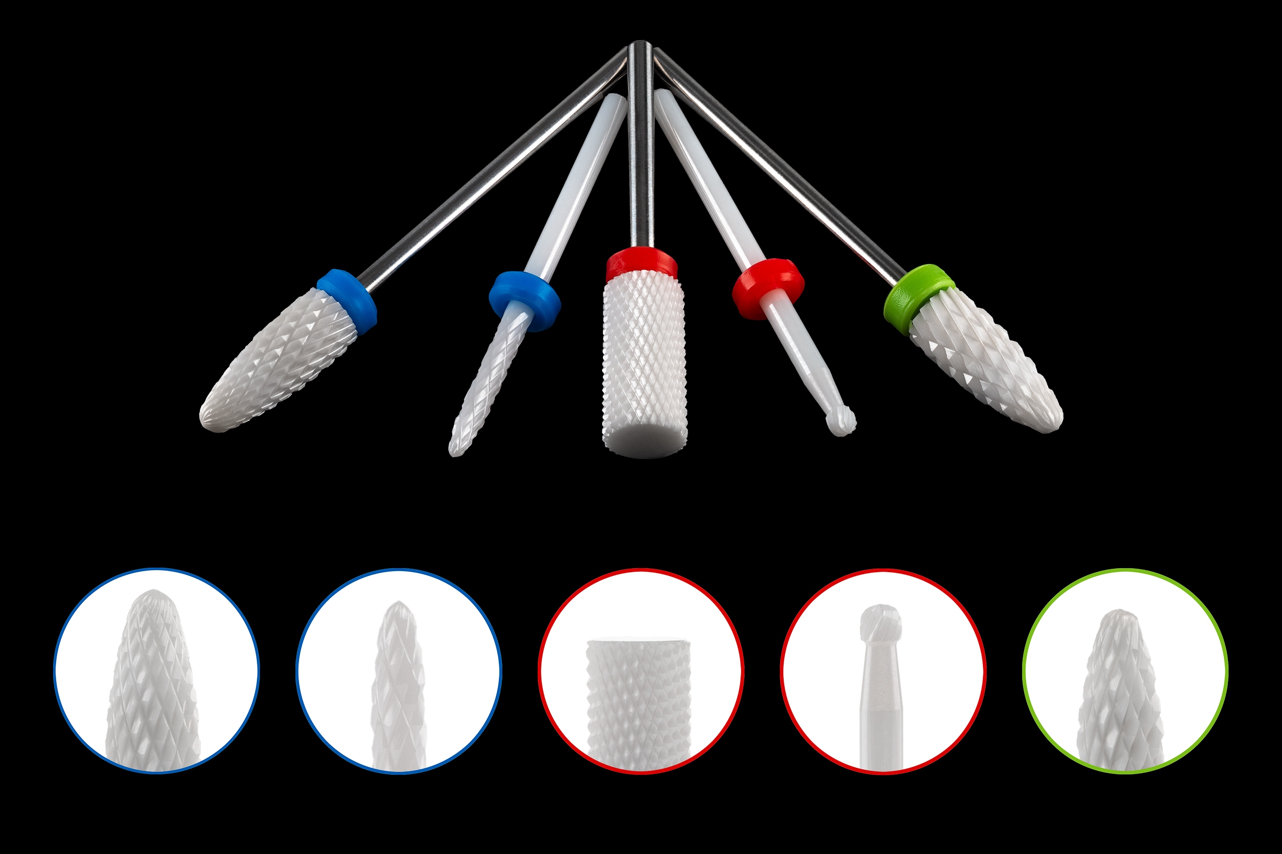 Керамічні фрези, які використовуються для видалення гібридного шару, використовуються в манікюрі та педикюрі.