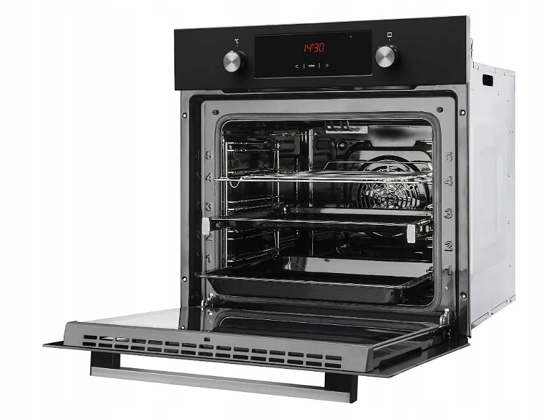 Amica EB7541DB FINE це сучасна вбудована електрична духовка, яка вирізняється елегантним дизайном у матовому чорному та нержавіючій сталі, а також функціональністю, що полегшує щоденне приготування їжі. Завдяки телескопічним направляючим з функцією STOP витягувати та засовувати гарячі лотки абсолютно безпечно та зручно. Духова шафа пропонує функцію швидкого попереднього розігріву за 4 хвилини, що дозволяє заощадити час і швидше почати випічку. Завдяки технології рівномірного випікання ваша випічка завжди буде ідеально підрум'яненою та пропеченою всередині. Управління здійснюється за допомогою ручок і сенсорного LED дисплея, який точно контролює час запікання і автоматично вимикає пристрій, коли страва готова. Ємність 65 літрів робить духовку ідеальною як для повсякденних страв, так і для великих страв для всієї родини.