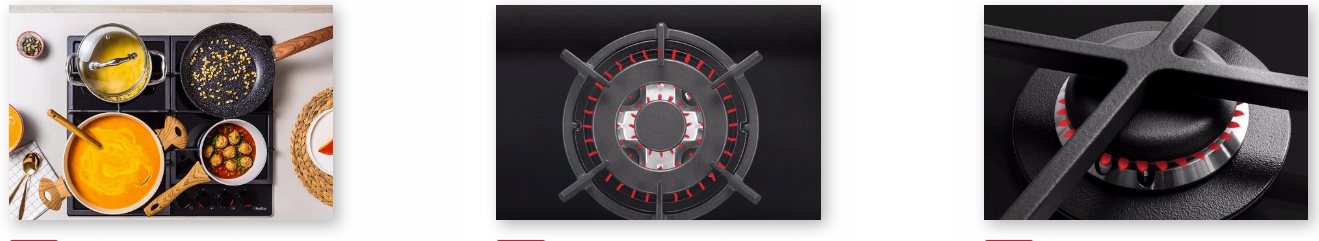- Інше: Спеціальна конфорка WOK - потужна конфорка з потрійним полум'ям, ідеально підходить для приготування їжі у великих каструлях і посудинах типу Wok. Стабільні чавунні решітки - вони більш міцні та стійкі, і водночас дуже легко підтримувати в чистоті