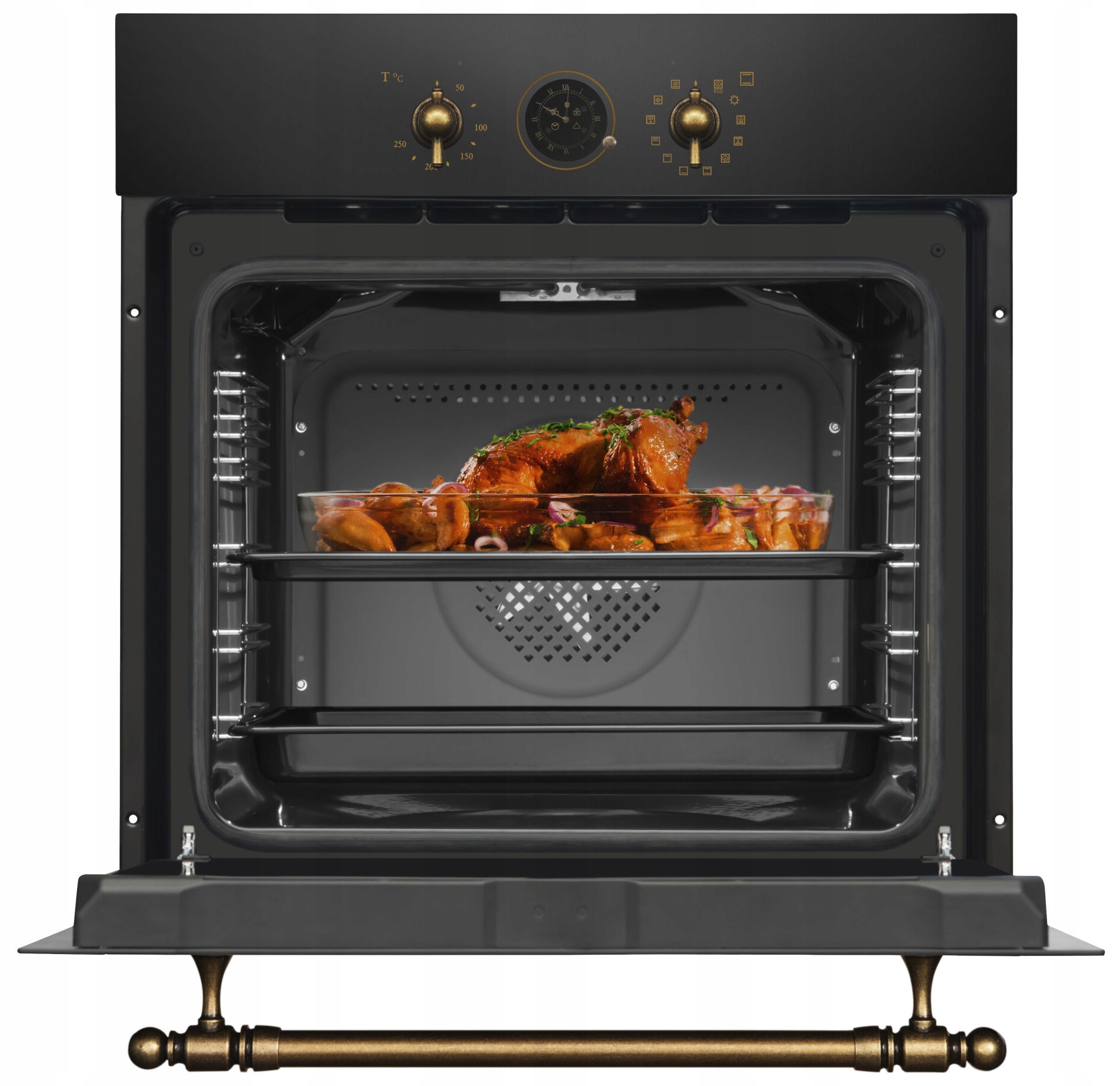 Новий дизайн камери духовки гарантує ідеальне, рівномірний розподіл тепла по духовці. Завдяки цьому ви можете приготувати велику партію випічки, знаючи, що вона рівномірно підрум'яниться і пропечеться. У цій просторій духовці можна легко помістити понад 100 мафінів одночасно! Ви можете легко сушити гриби та фрукти та запікати на кількох рівнях одночасно.