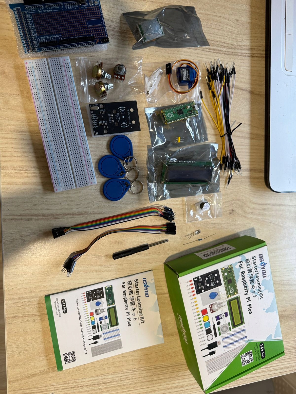 - Oyoo Python Набір навчання - це базовий набір навчальних наборів у фото Raspberry Pio. Такі дисплеї, звуки, драйвери, контролери та датчики, щоб ви могли вивчити електронні пристрої. Розроблений Raspberry Pi