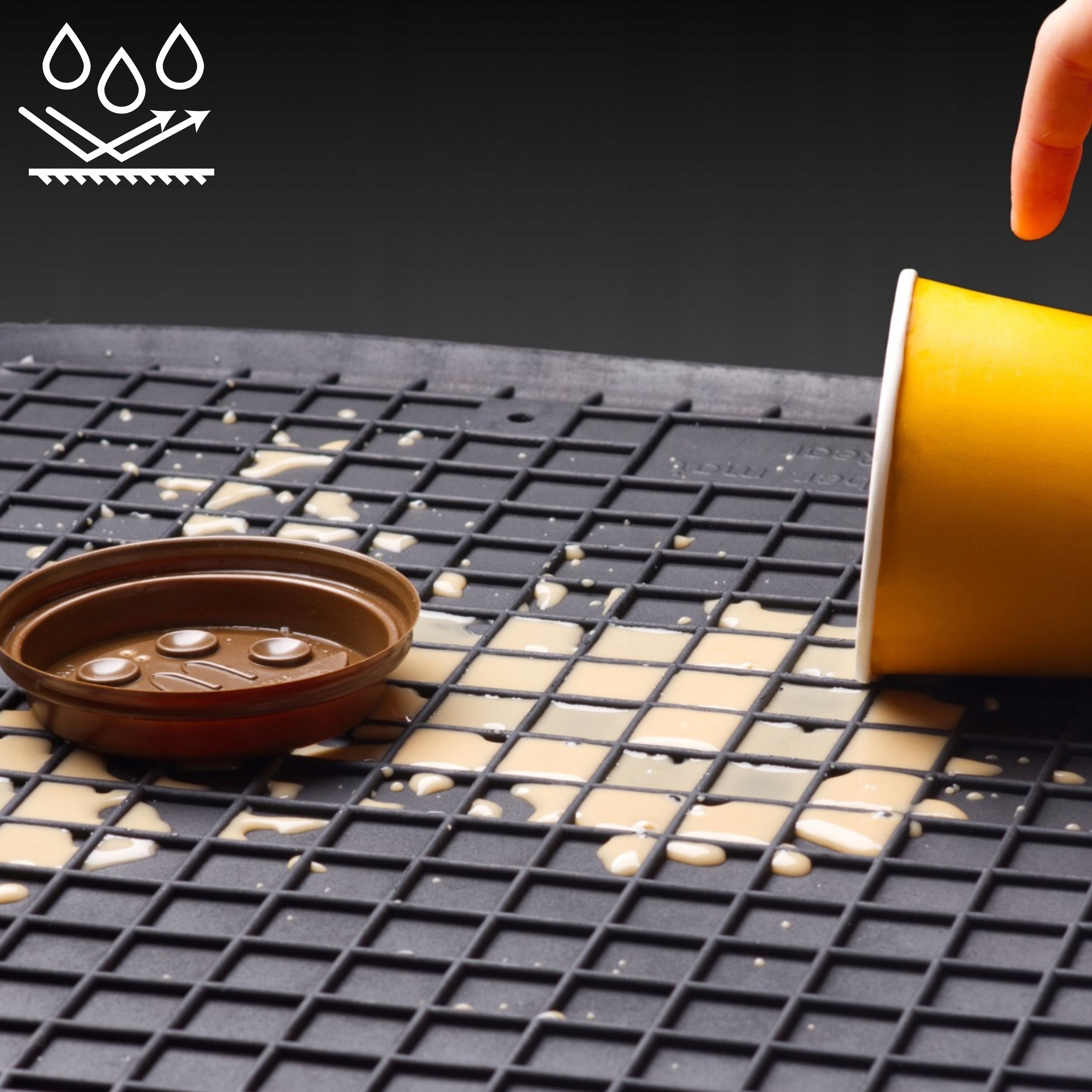 Килимок має унікальну функцію подвійного захисту завдяки спеціальному посиленню на висоті ніжок у центральній частині килимка. Цей подвійний шар гуми створює додатковий захисний бар’єр, запобігаючи потраплянню вологи, бруду та пошкоджень на оббивку автомобіля.