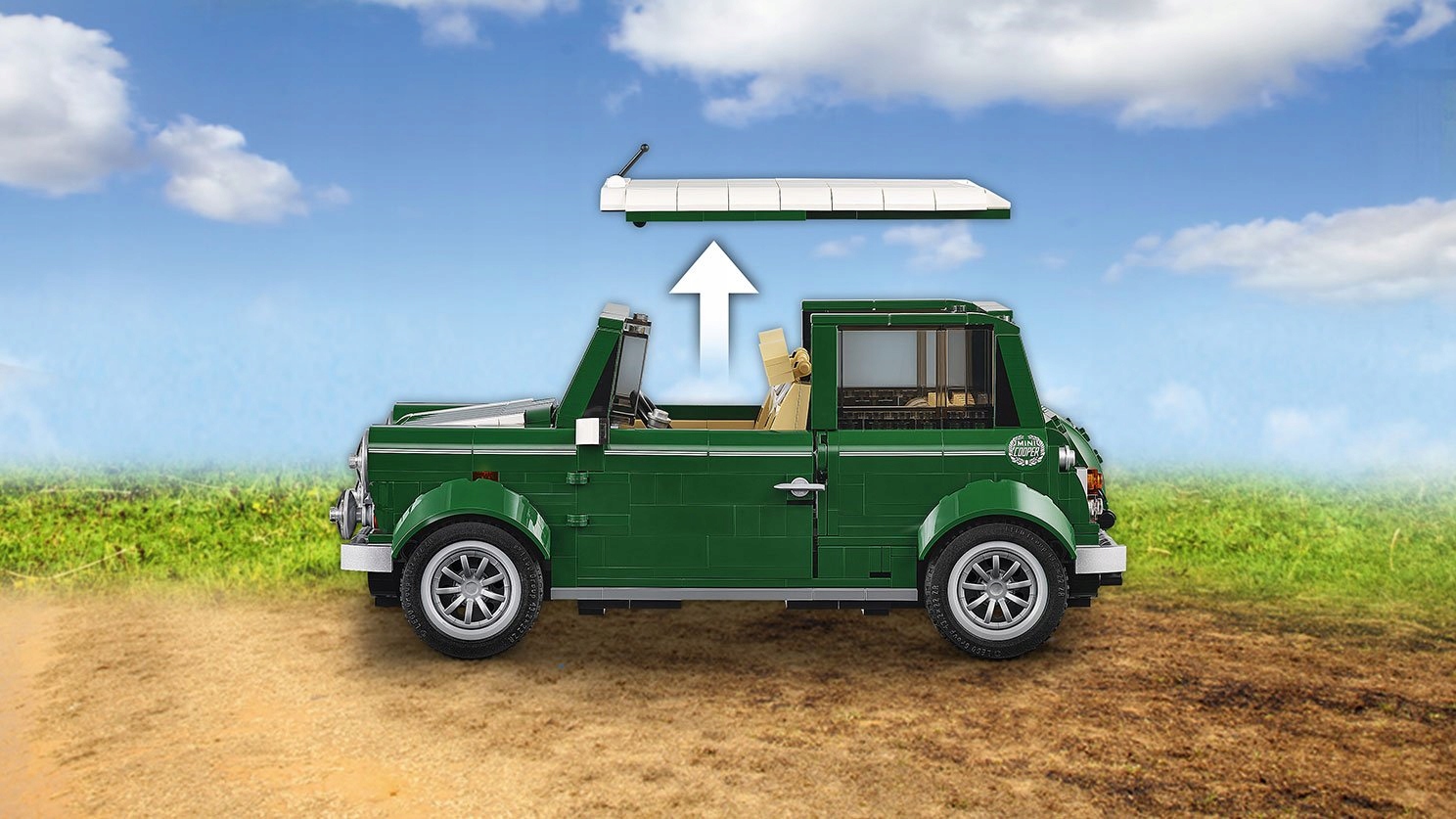 Покатайтеся на знаменитому MINI Cooper! Ця чудово виготовлена LEGO® модель класичного MINI Cooper Mk VII пропонує безліч автентичних деталей, від зелено-білої фарби з білими дзеркалами та спортивними смугами до дверей, що відкриваються, капота та багажника, спортивних протитуманних фар, детального простору для двигуна та запасного колеса.