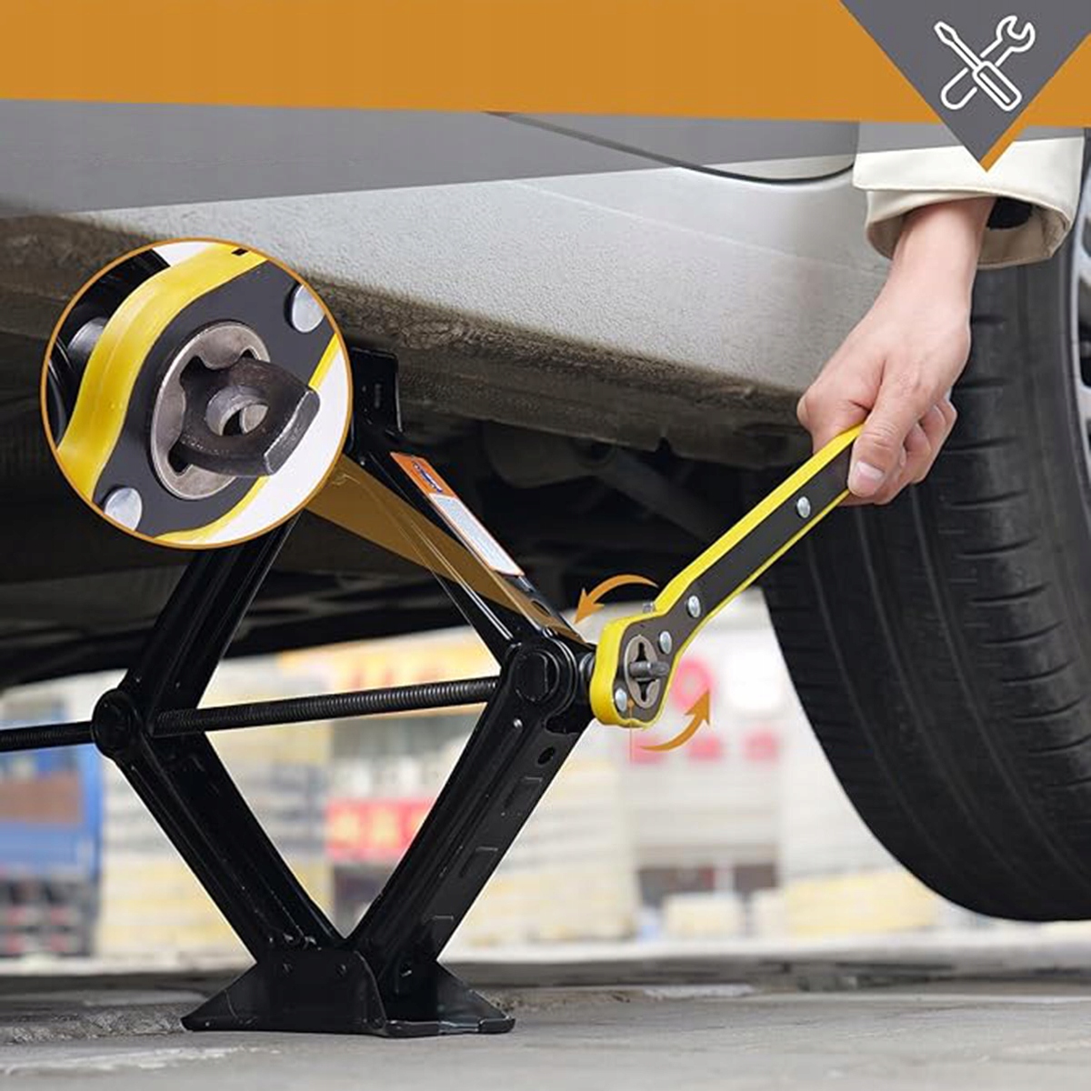 • 1x ножичний підйомник із храповим ключем