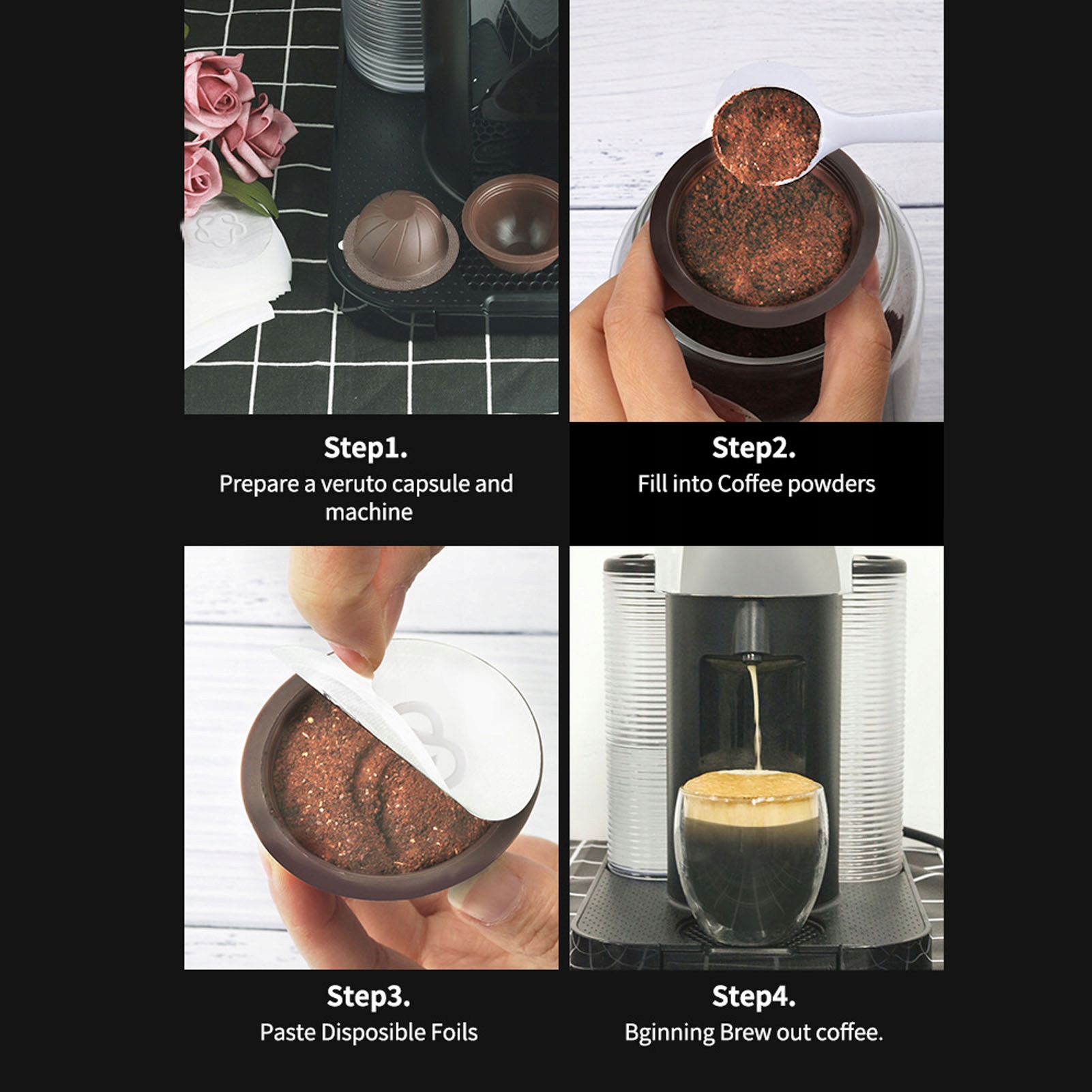 Функція:1. Ефективність: ідеальний помічник для повторного наповнення кавових капсул. Подаруйте вам новий чудовий досвід самостійного приготування кави. Набір для наповнення капсул був спеціально розроблений для капсул VertuoLine і допомагає вам наповнювати кавові стручки швидше, але без безладу. Забезпечує зручність і високу ефективність щоденного кави.