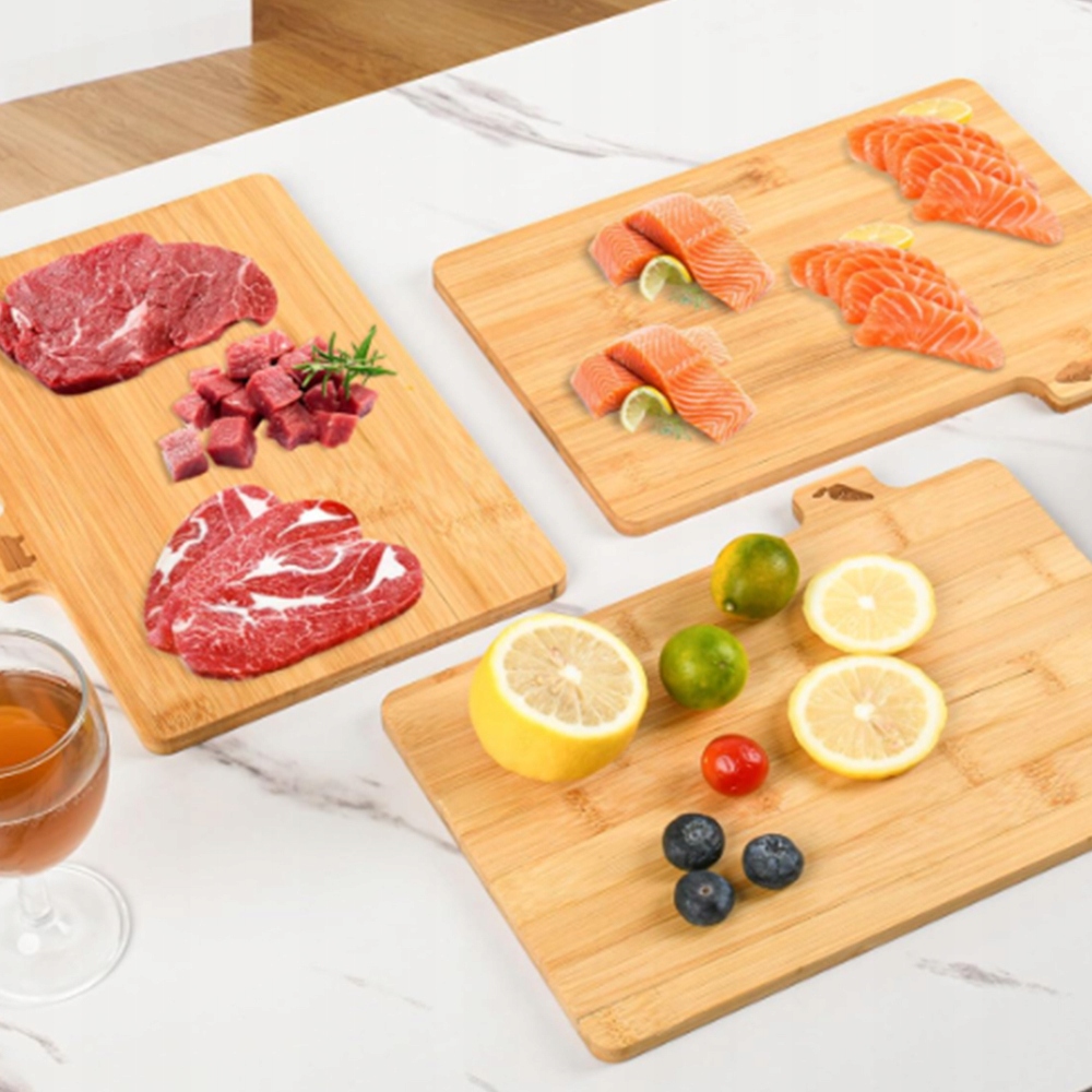 Дошки виготовлені з натурального бамбукового дерева - матеріалу, відомого своєю винятковою міцністю та стійкістю до вологи. Бамбук не вбирає запахи та воду, що гарантує тривале використання та легке очищення.