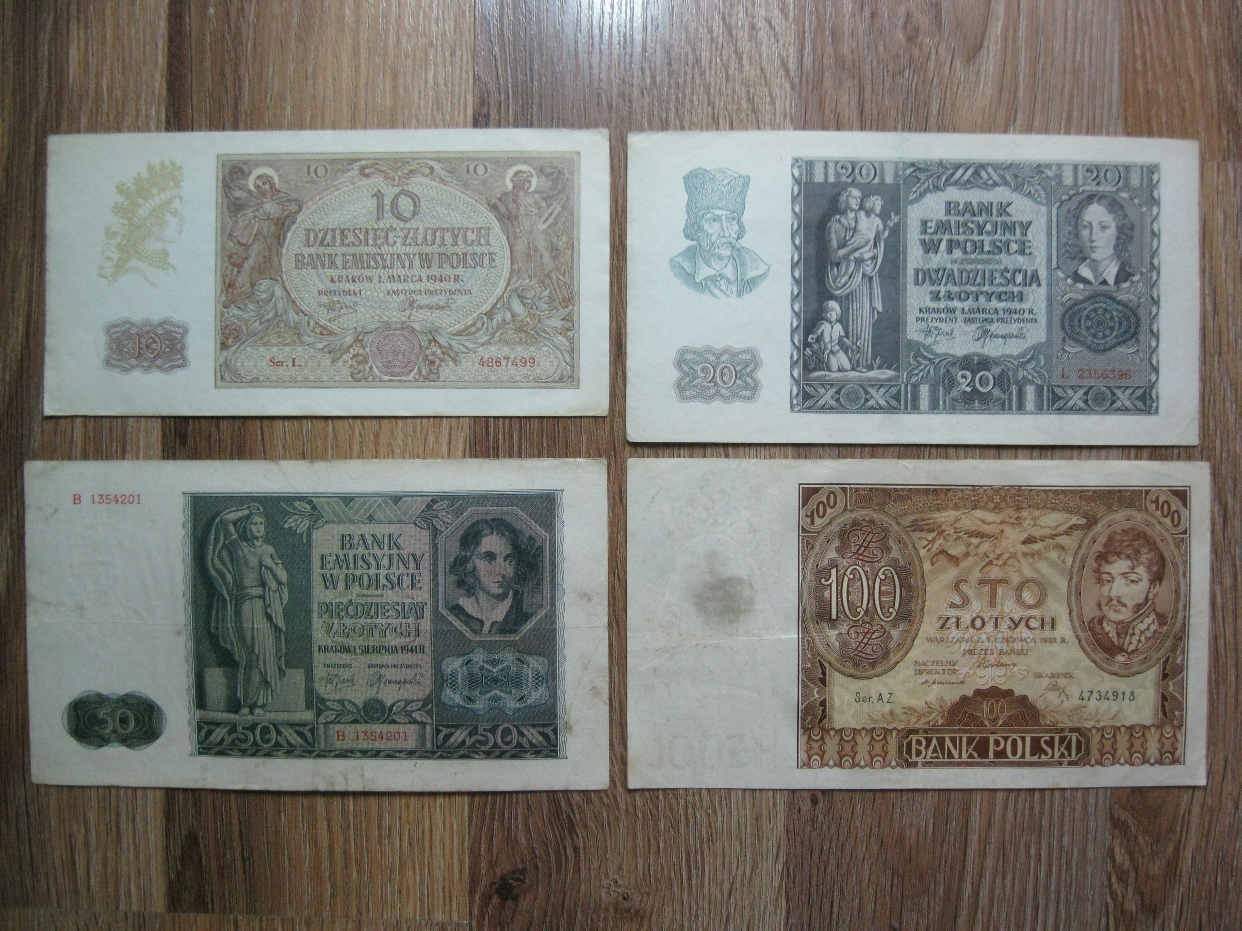 Набір банкнот PLN 10 20 50,100. 1932-1941