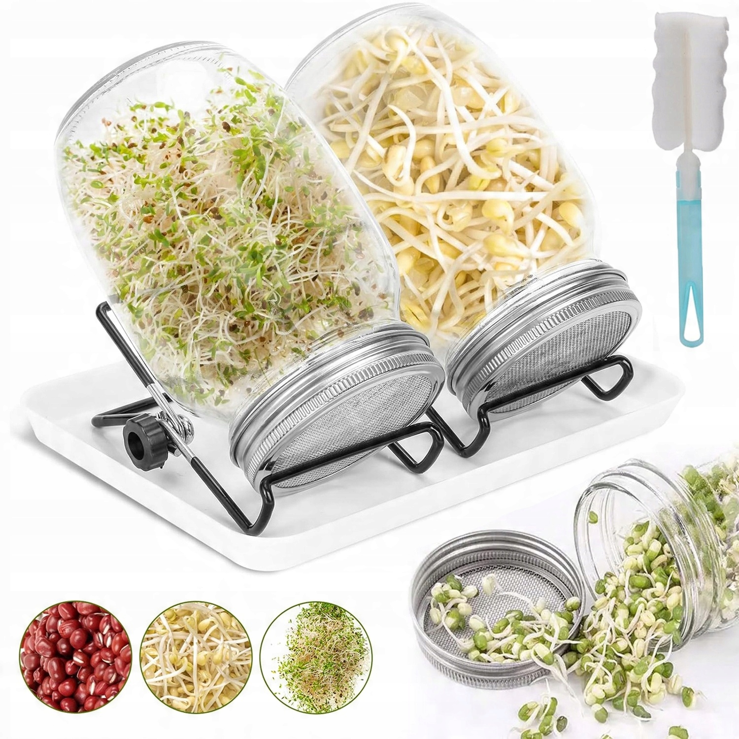✔️Набір із 2 банок для проростання об’ємом 1000 мл з кришками та ручками для чищення щіткою для чищення