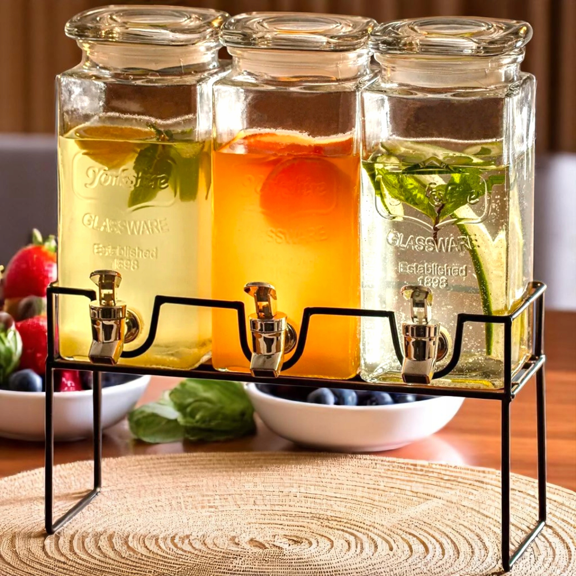 Набір банок з дистриб'ютором крана 3х1,5 л для лимонаду, сік