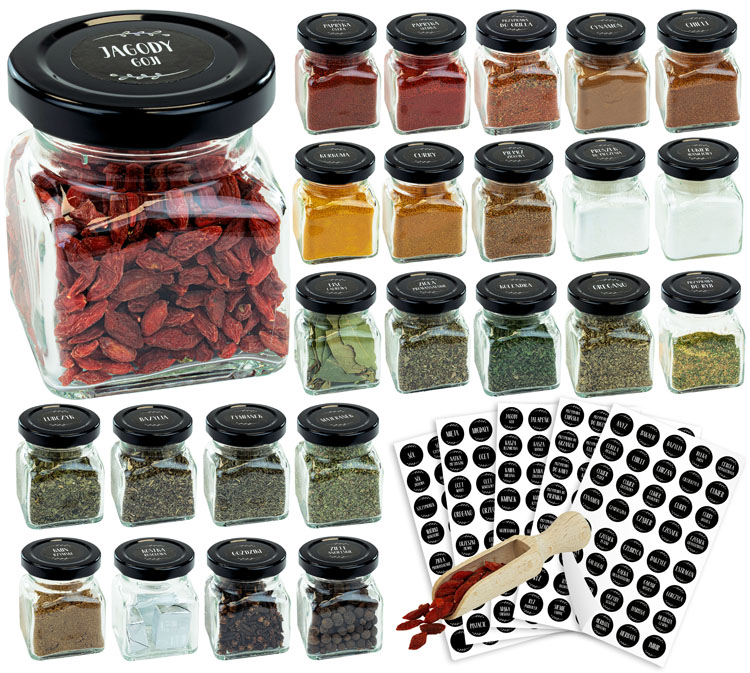 Набір банок з етикетками для спецій, 120 мл, 20 шт
