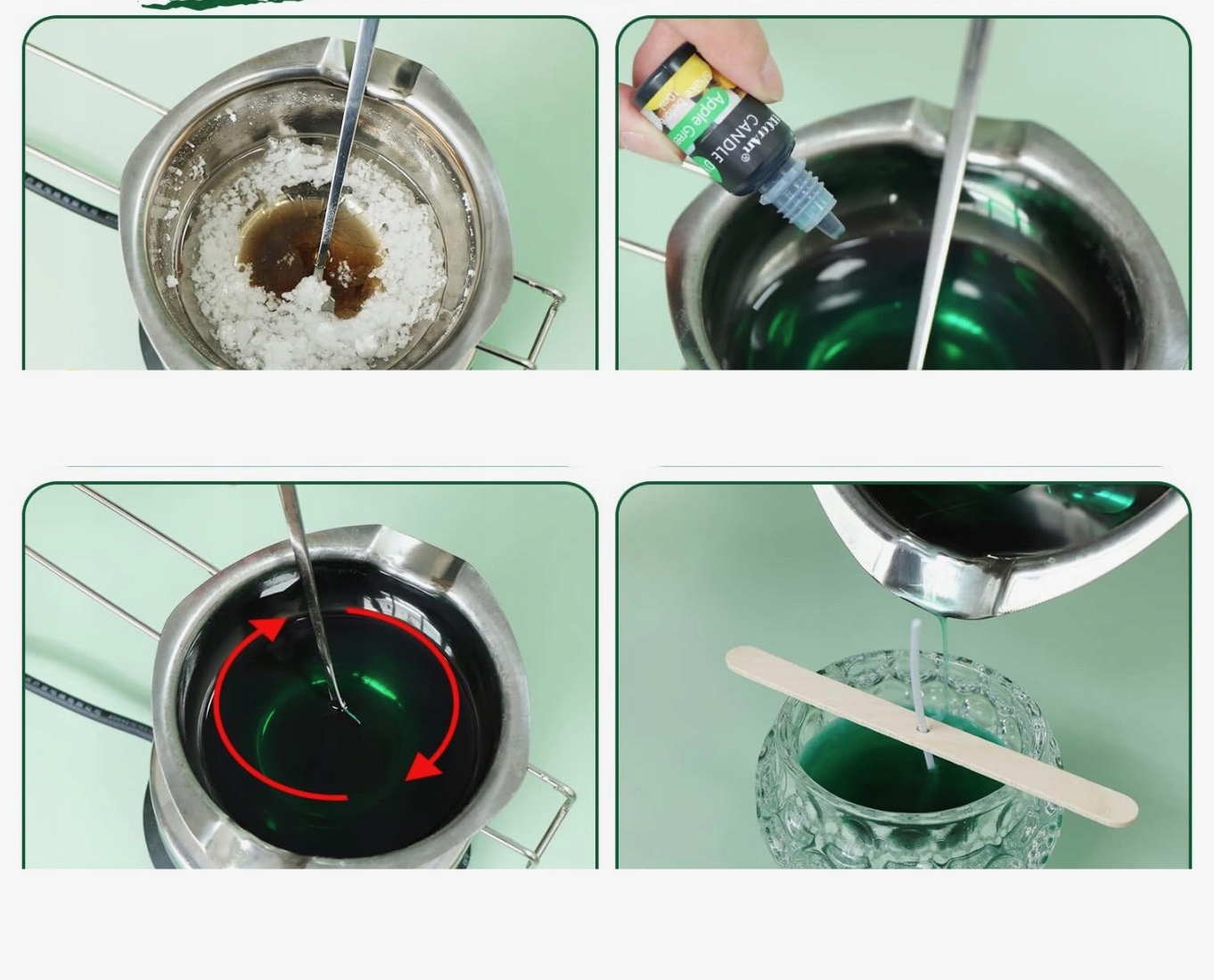 ► Наші барвники відрізняються від традиційних свічок. Завдяки консистенції рідини вам не доведеться чекати, коли вони розчиниться - просто змішайте її , щоб отримати рівний колір. Крім того, він не залишає частинок або відкладень у воску.