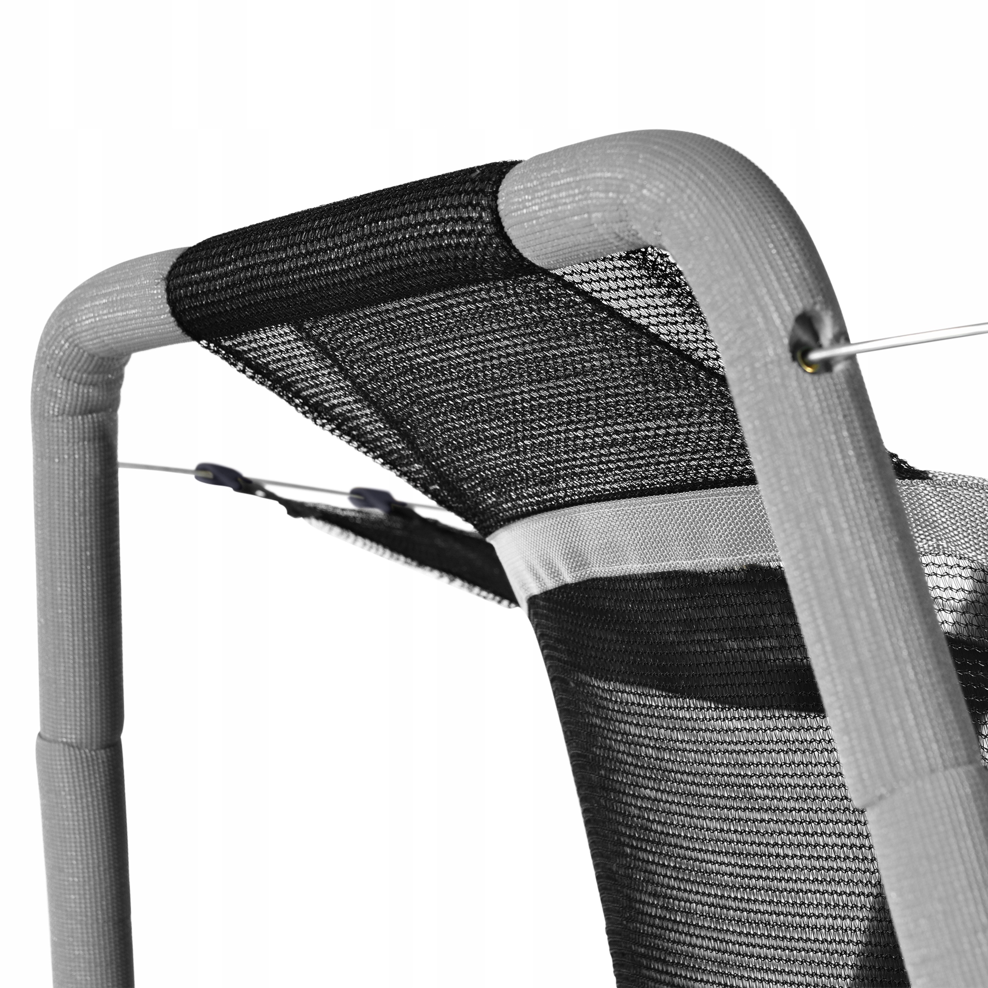 Батут рамка виготовлена зі сталі для підвищення міцності та довговічності. корпус батут був розроблений для того, щоб утримувати дітей у безпечному місці при використанні батуту, зменшуючи ризик падіння. Товста пінняна підкладка охоплює захисні бруски і забезпечує м'яку подушку.